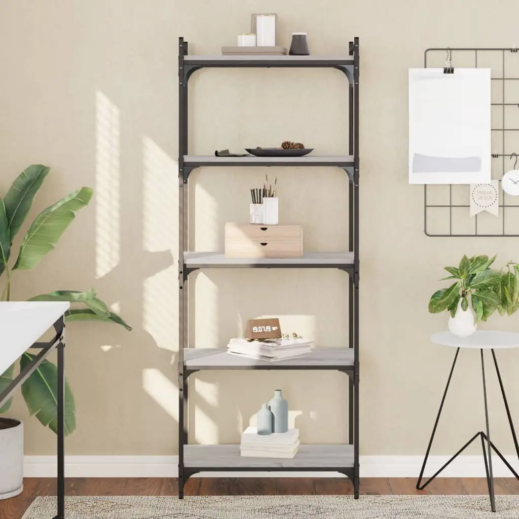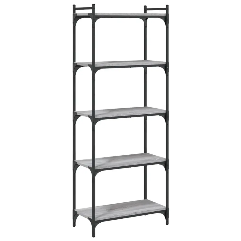 This 5-Tier Bookcase is all about blending function with a stunning industrial look. It's spot on for any living room, office, or study. Made from top-notch engineered wood, this sleek Grey Sonoma piece gives you loads of room for books, decorative stuff, and more while sprucing up your home decor with its modern vibe. Ample Storage: The five spacious shelves help you sort out your books, plants, collectibles, and various decor items, making the most of your vertical space.Adjustable Shelves: Change the shelf heights to fit larger items or smaller ones, giving you flexibility and a personal touch.Industrial Design: With a tough, factory-inspired look, this bookcase adds a trendy urban feel to any space, matching both modern and vintage styles easily.Sturdy Construction: Made from quality engineered wood with a strong metal frame, this bookcase is built to last, even with daily use.Easy Assembly: You'll find easy-to-follow setup instructions, so you can get it all set up quickly and adjust it to fit your space as you like.