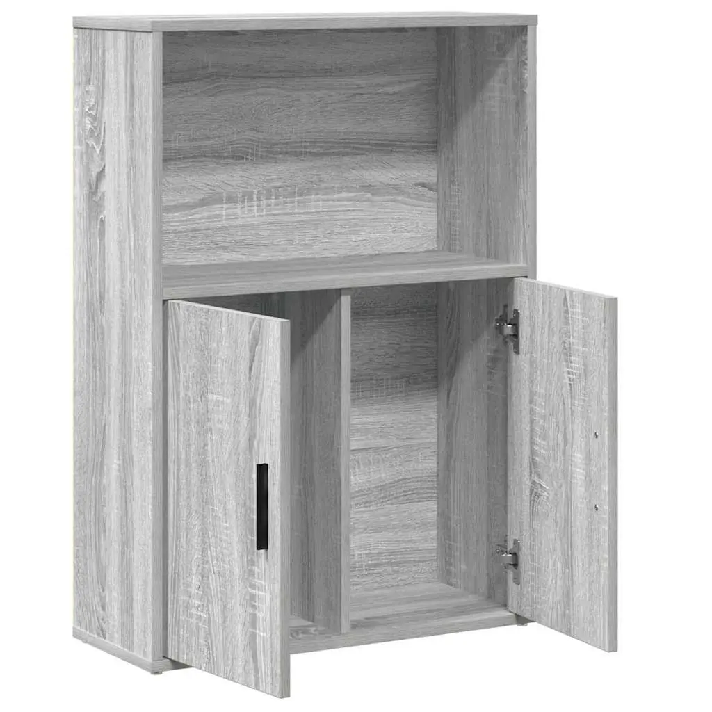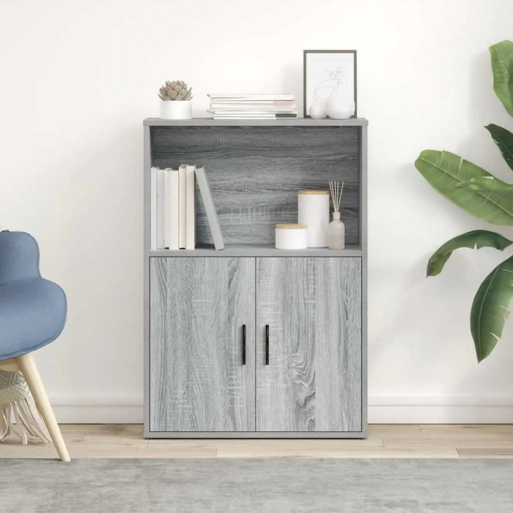 This bookcase blends style and practicality, making it a must-have for any modern living space or home office. Its beautiful Grey Sonoma finish enhances its streamlined look, maximizing storage while also serving as a great display for your favorite books and decorative items, appealing to adults and anyone who loves a modern vibe. Ample Storage: The design features two enclosed compartments for storing your books, files, or decorative items out of sight, keeping things tidy. The hinged doors securely protect contents while allowing easy access when needed.Sleek Design: Its modern, rectangular shape and matte finish add sophistication to any environment. Perfect for those who appreciate simplicity and functionality, this bookcase enhances the beauty of your room.Easy Assembly: Each bookcase comes with a detailed instruction manual, designed for one person to complete. You’ll only need a screwdriver, making it a straightforward addition to your home without any hassle.Quality Material: Made from engineered wood, this bookcase balances sturdy design with a smooth texture that's easy to clean. Its durable structure is built to withstand daily use while keeping its good looks.Versatile Use: Perfect for home libraries, living rooms, or your personal office, this bookcase serves as an ideal shelving solution for organizing and displaying books and decorative items effectively within your space.