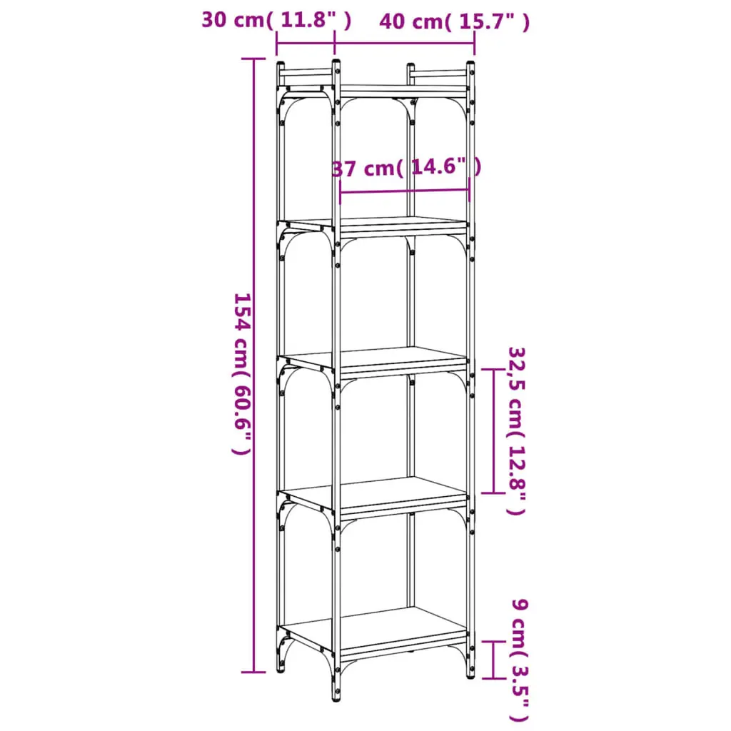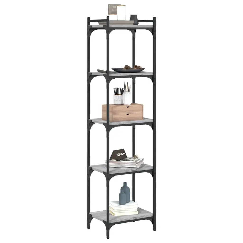 This Industrial 5-Tier Bookcase delivers both style and function, making it a fantastic addition to any living room or office. It's made from solid engineered wood and metal, showcasing a trendy grey sonoma finish that adds a touch of urban loft style while providing plenty of storage for books, decor, and sentimental treasures. Industrial Aesthetic: The tough industrial design with raw materials and matte finish adds a chic yet edgy vibe to your space.Ample Storage: With five adjustable shelves, this bookcase gives you lots of room to keep books and display decor, keeping everything tidy and appealing.Durable Construction: Crafted from top-notch engineered wood and metal, this bookcase is built to last, making it a solid choice for your home or office.Space-Saving: With its slim design, this tall bookcase fits perfectly into tighter spots, ideal for apartments, offices, or snug corners.Easy Maintenance: The smooth surface of this bookcase is a breeze to clean; just wipe it down with a dry cloth to keep it looking fab.