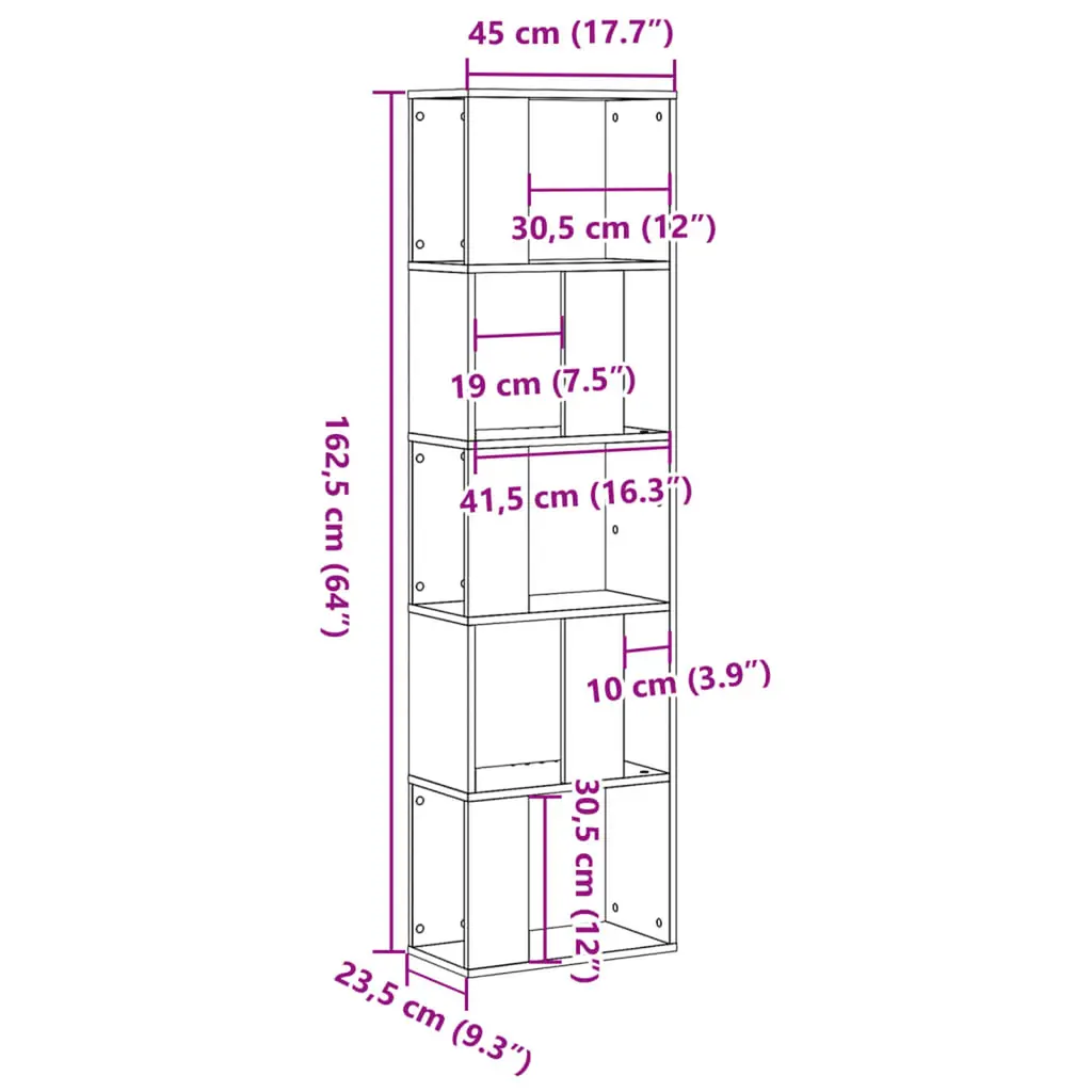 Vidaxl Bookcase Old Wood Engineered Wood 5-Shelf Bookcase Rectangular