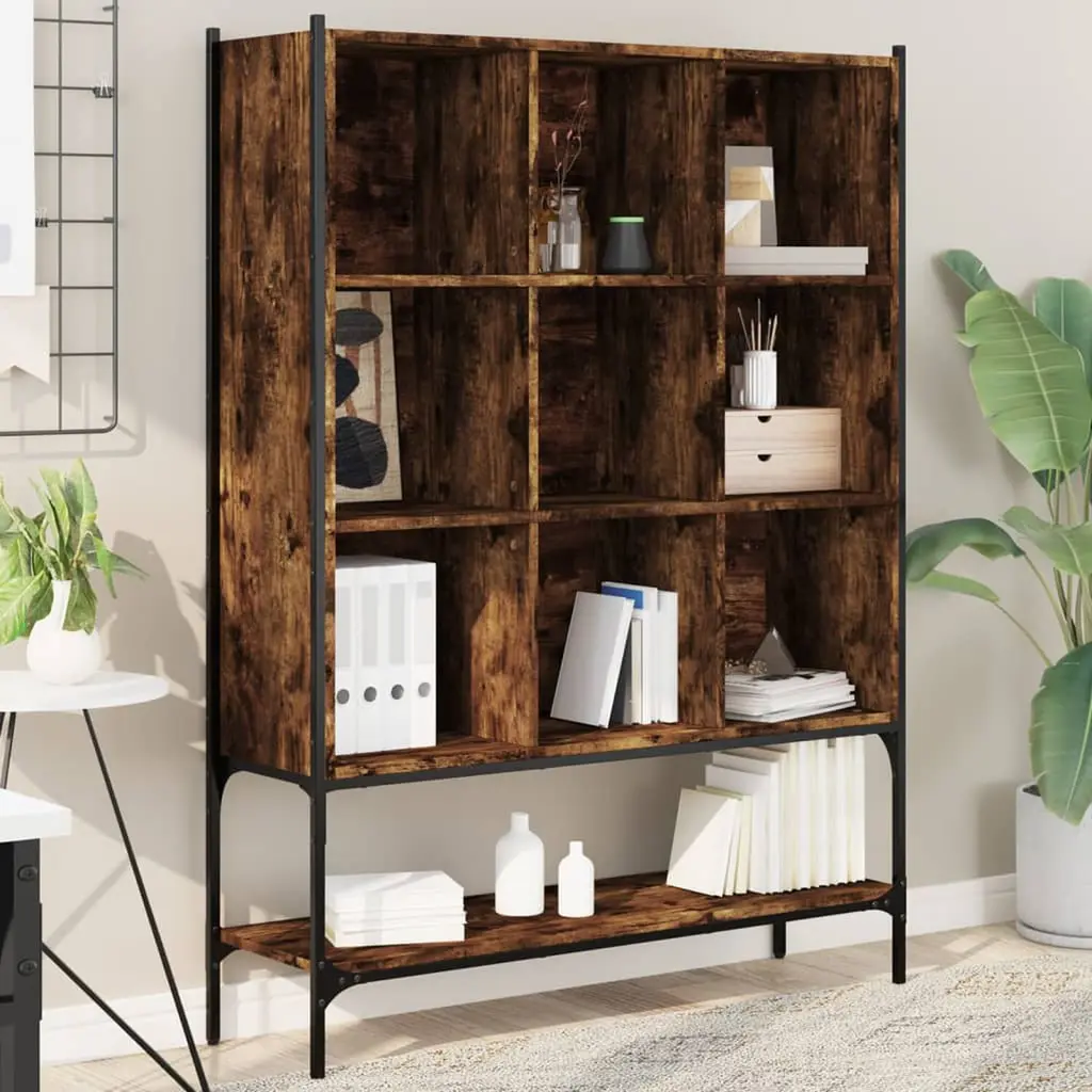 Vidaxl Bookcase Smoked Oak Engineered Wood And Steel Medium Bookcase