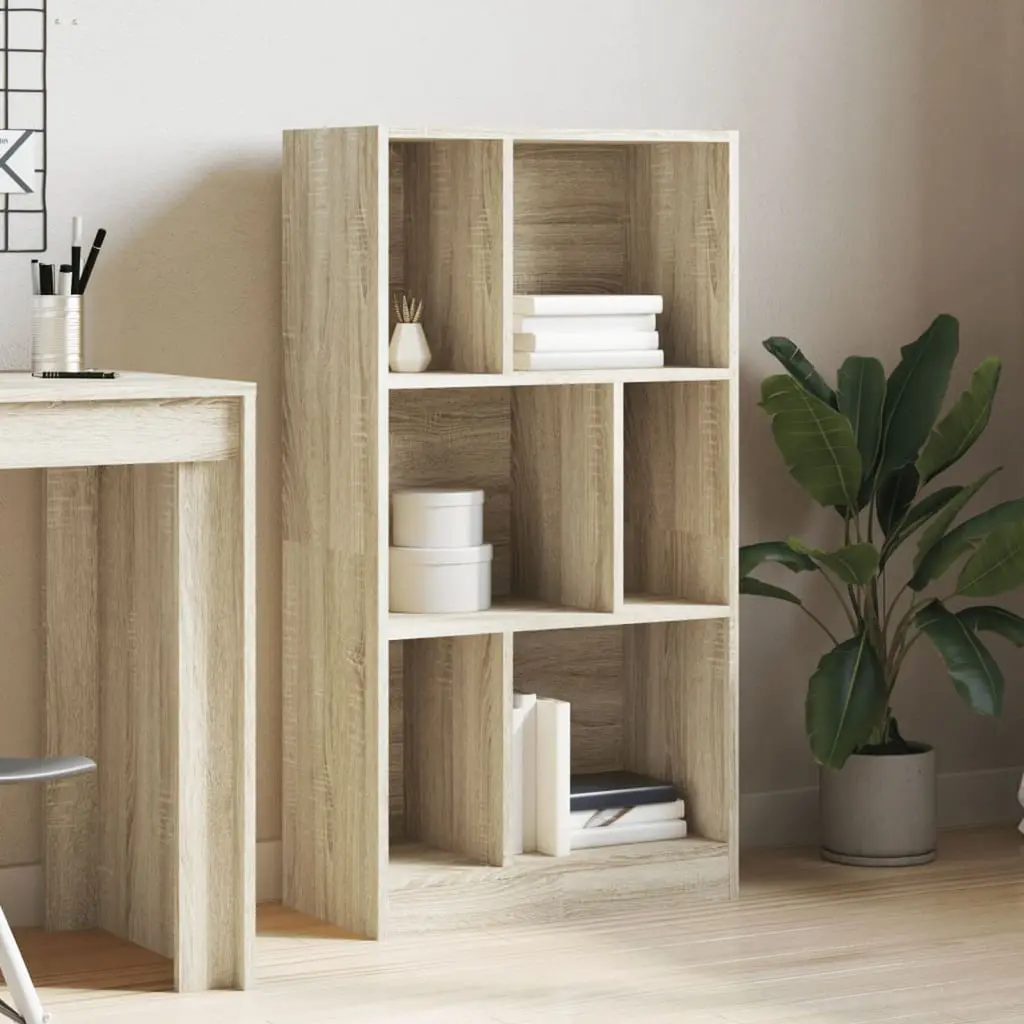 This Modern Sonoma Oak Bookcase combines style and practicality, perfect for storing all sorts of books and decorative items. Its smooth finish and trendy design create a welcoming vibe in any space, making it ideal for both home and office. This bookcase has tons of space with six compartments, perfect for storing your collection of books, showing off decorative items, or keeping study materials organized.The modern design features clean lines and a slick Sonoma oak finish, making it fit perfectly into any trendy interior.Made from engineered wood, this bookcase is built to last, providing solid storage for years to come.The stylish brown color highlights the natural beauty of the wood, and its smooth texture makes it easy to care for.With a wall attachment device included, you can securely fix this bookcase to your wall for added safety and stability.
