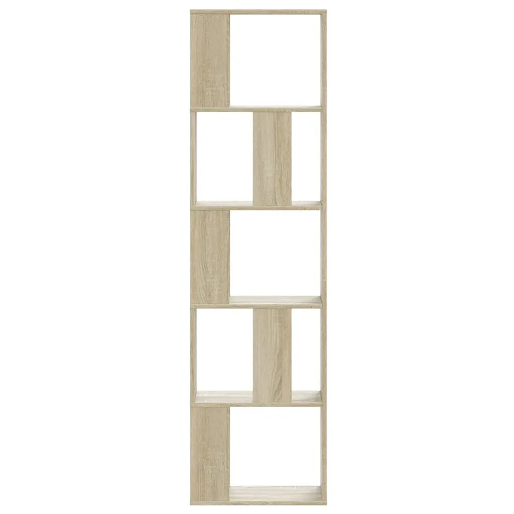 This Sonoma Oak bookcase is a stylish and practical addition to your space. It not only provides storage but also a cool way to display your favorite books and decorative items. With its clean lines and warm finish, it fits well with various interior styles, enhancing the vibe of any home or office. Sturdy Construction: Made from engineered wood, this bookcase is built to display and organize books, with a weight limit of 143.3 lb.Space-Saving Design: It's tall and narrow, perfect for making the most of vertical space, ideal for smaller homes or busy offices.Organizational Ease: With five tiered shelves, it's easy to keep books and items neat and show off your favorite pieces.Versatile Functionality: Whether it’s for a reading nook or an office, the bookcase adapts to your needs with ease.Simple Maintenance: The smooth finish makes it easy to clean, keeping it looking sharp without any hassle.