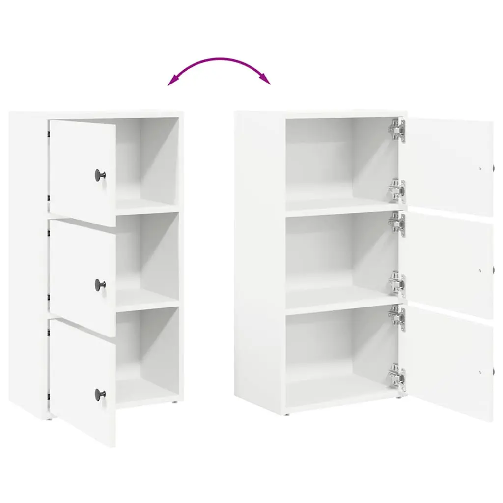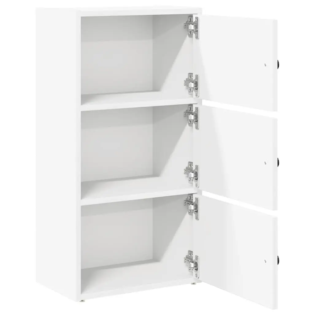 This White Engineered Wood Bookcase is a smart and stylish option for sorting your books and decorative items. With its sleek look and plenty of storage, it’s perfect for all sorts of spaces, like living rooms and offices, making everything look better. Ample Storage: This bookcase features three built-in shelves, offering loads of space for books and decor. It maximizes vertical space—perfect for smaller rooms where every bit counts.Flexible Door Installation: You can install the doors in different ways to fit your space. That makes it super handy to use and helps you organize however you prefer.Modern Design: The matte white finish and clean lines show off modern style, fitting right into any room—be it contemporary or classic. It keeps everything looking neat and fresh.Wall-Mounted: Designed to attach securely to the wall, this bookcase is stable and gives the illusion of more space—ideal for narrow living areas or offices.Quality Construction: Made from tough engineered wood, this bookcase is built to last, ensuring your items are safe for years.