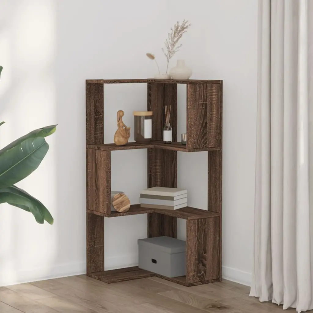 Vidaxl Corner Bookcase 3-Tier Brown Oak 19.7x19.7x40.2" Engineered Wood