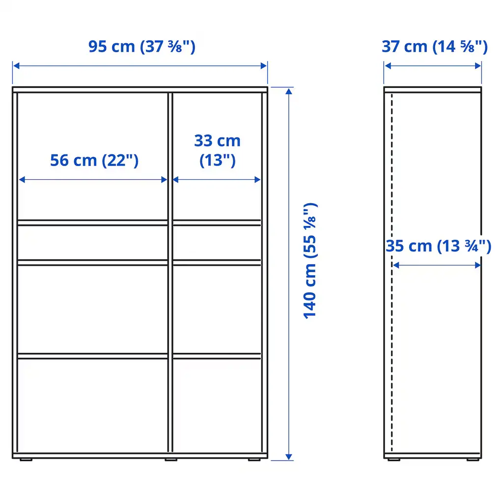 VIHALS Shelving unit with 6 shelves - dark gray 37 3/8x14 5/8x55 1/8 ". You get a seamless look when combining 2 or more VIHALS units as the fixed shelves align. Hide messy cables from chargers, devices and decorative lighting by leading them through the outlets in the back.