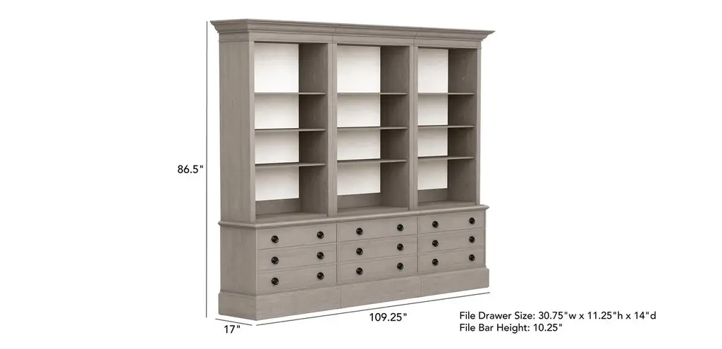 The Villa Home Office series includes all of the original design elements of the Villa Wall series, including full crown molding and low-waist profiles that maximize display and storage space. These modular units offer dozens of possible configurations. Each piece mixes classic styling with functionality and versatility. The Open Bookcase Upper is available in an array of beautiful finishes, including select two-tone combinations, that are hand-applied and then hand-rubbed to create a vintage feel.