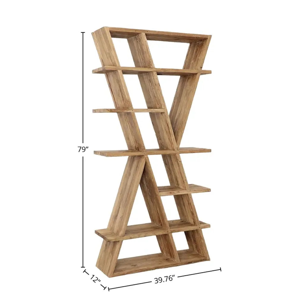 Violet 79" Tall Reclaimed Teak Wood Bookcase, Natural