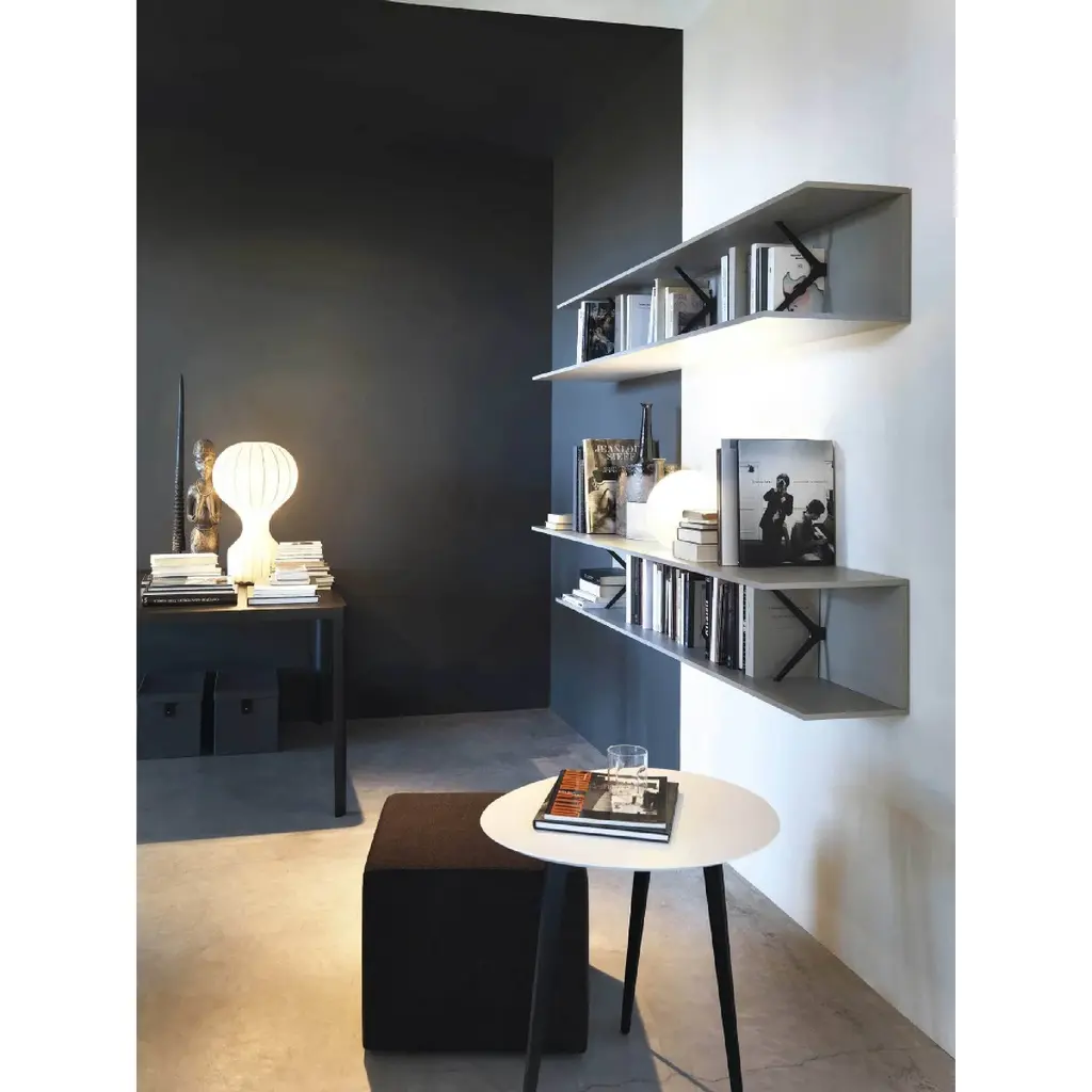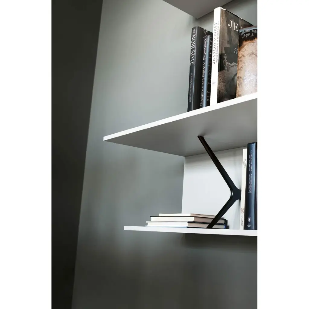 The Wall-Mounted Panel Bookcase by Lema Mimi, is a graphic wall element that instantly catches your eye, the wall-mounted bookcase Mimì uses a C-shaped structure to create an open compartment with two shelves. The system is supported by an unusual, stylized K-shaped metal structure, which also acts as a divider. Thanks to the various sizing options and the choice between using one sole section or combining several along the wall, Mimì is the perfect way to accommodate any furnishing requirement. The supporting structure in metal is combined with shelves in wood or matte lacquer, while the bold, geometric style makes it ideal for any room of the house, whether that's the living room, the bedroom, the utility area, or the hall.