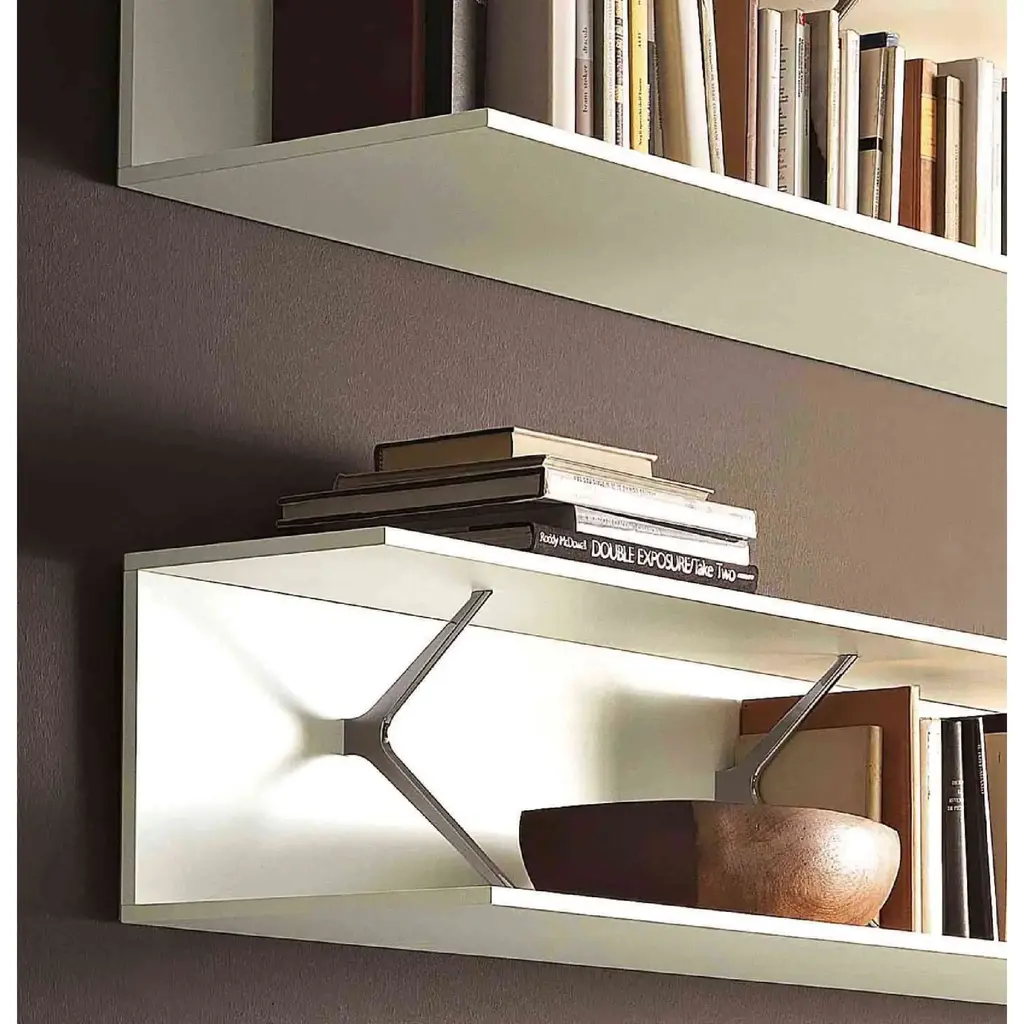 The Wall-Mounted Panel Bookcase by Lema Mimi, is a graphic wall element that instantly catches your eye, the wall-mounted bookcase Mimì uses a C-shaped structure to create an open compartment with two shelves. The system is supported by an unusual, stylized K-shaped metal structure, which also acts as a divider. Thanks to the various sizing options and the choice between using one sole section or combining several along the wall, Mimì is the perfect way to accommodate any furnishing requirement. The supporting structure in metal is combined with shelves in wood or matte lacquer, while the bold, geometric style makes it ideal for any room of the house, whether that's the living room, the bedroom, the utility area, or the hall.