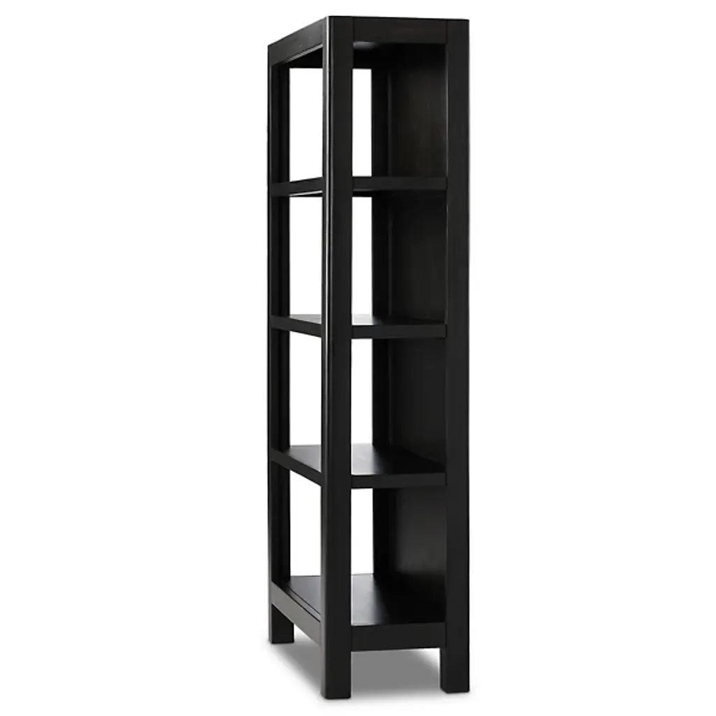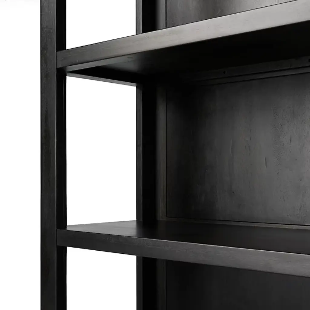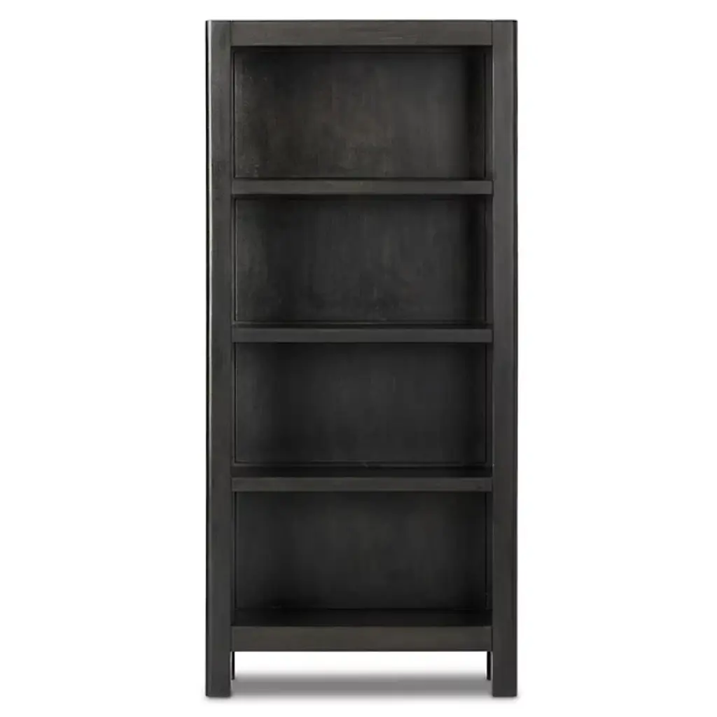 The Wimberley Bookcase from Four Hands is a contemporary masterpiece where its smooth, simple form embraces function. Expertly made from solid parawood with a distinguished, subtly worn black finish, this streamlined storage solution makes a sophisticated statement. Four fixed shelves with elegant recessed back paneling create the perfect stage for your literary collection and cherished treasures. Handcrafted in India, this refined piece transforms any room into a curated space where organization meets artistry, creating a perfect blend of modern design and ageless appeal.