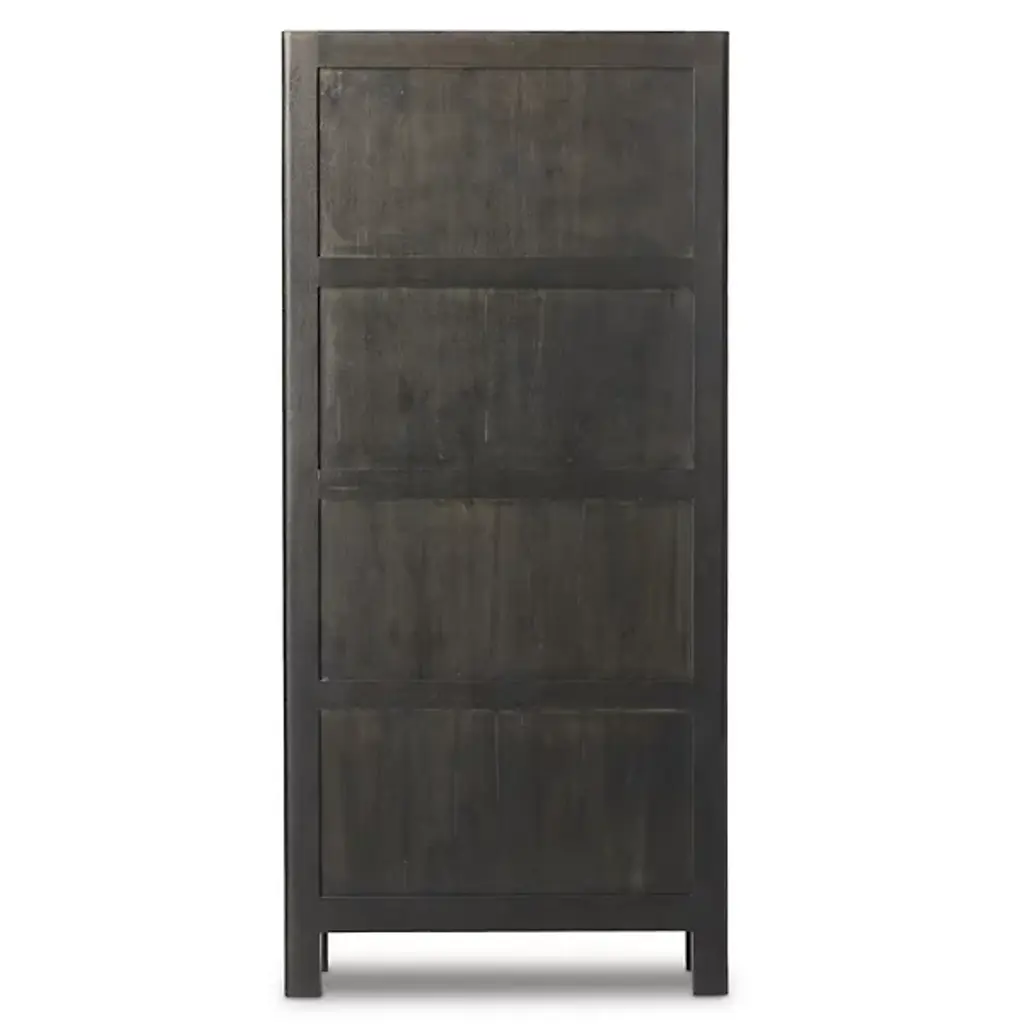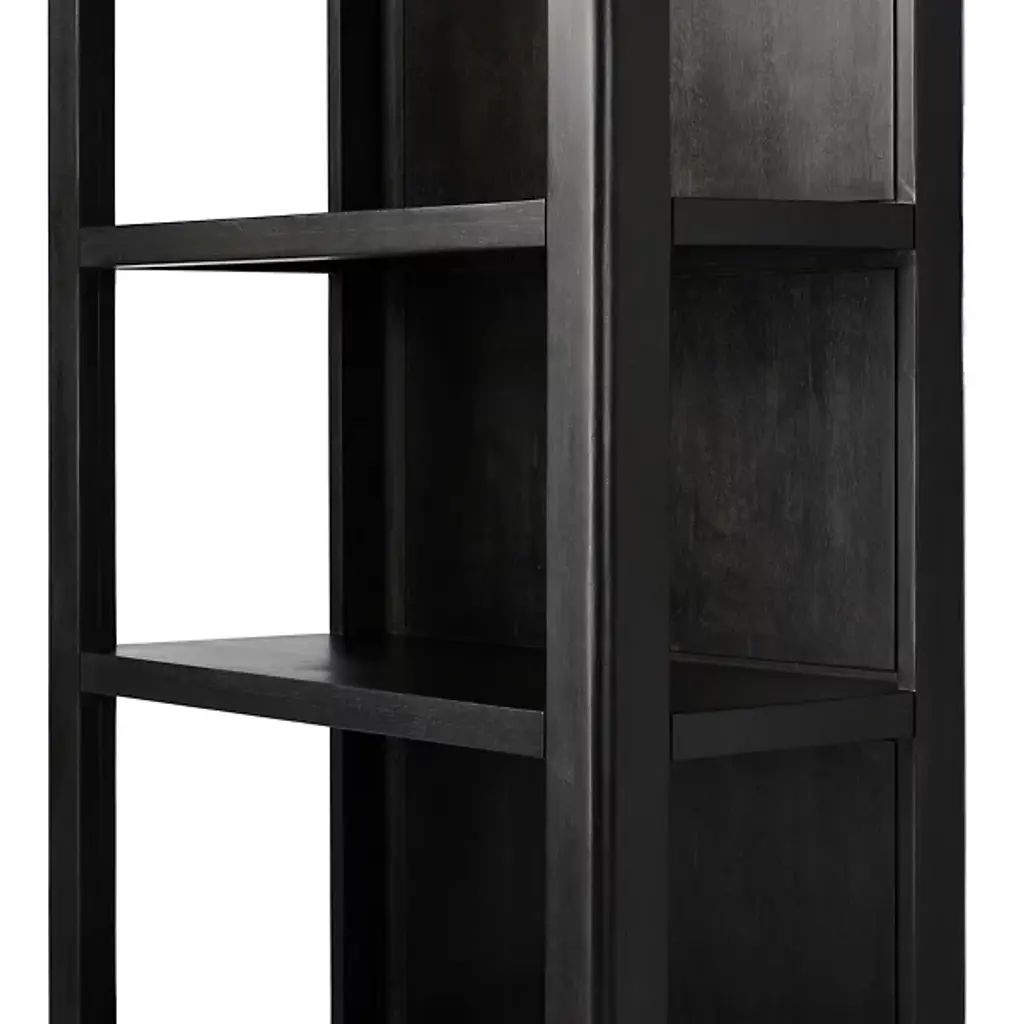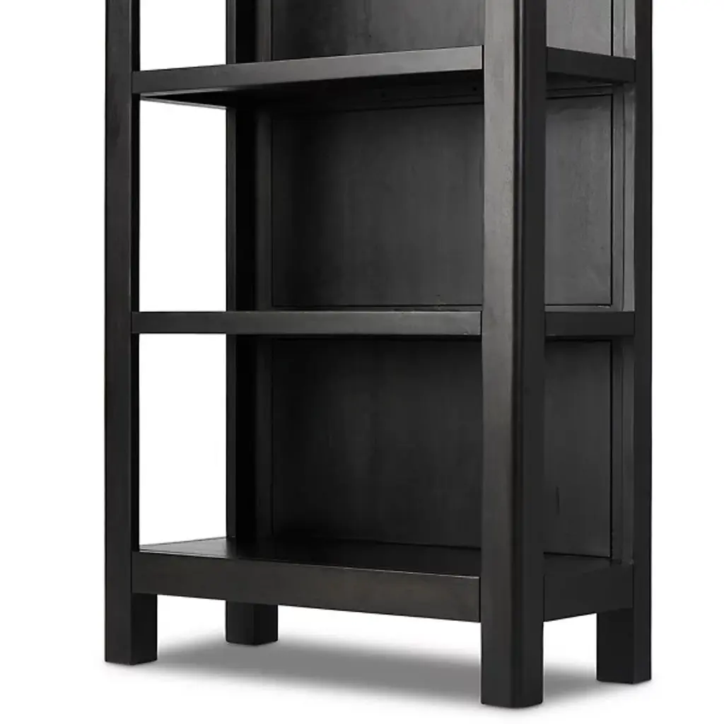 The Wimberley Bookcase from Four Hands is a contemporary masterpiece where its smooth, simple form embraces function. Expertly made from solid parawood with a distinguished, subtly worn black finish, this streamlined storage solution makes a sophisticated statement. Four fixed shelves with elegant recessed back paneling create the perfect stage for your literary collection and cherished treasures. Handcrafted in India, this refined piece transforms any room into a curated space where organization meets artistry, creating a perfect blend of modern design and ageless appeal.