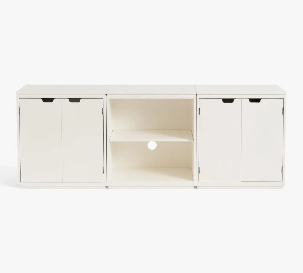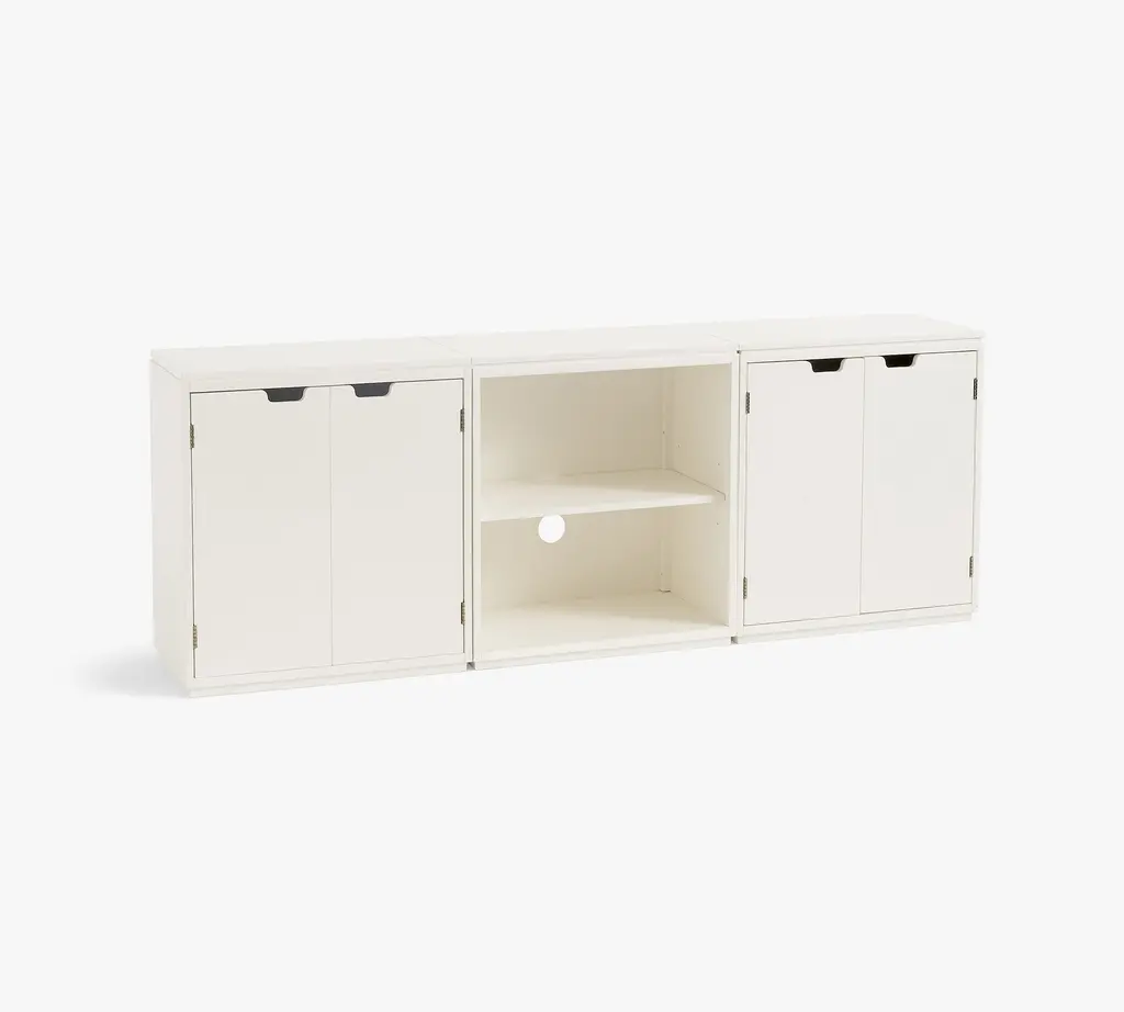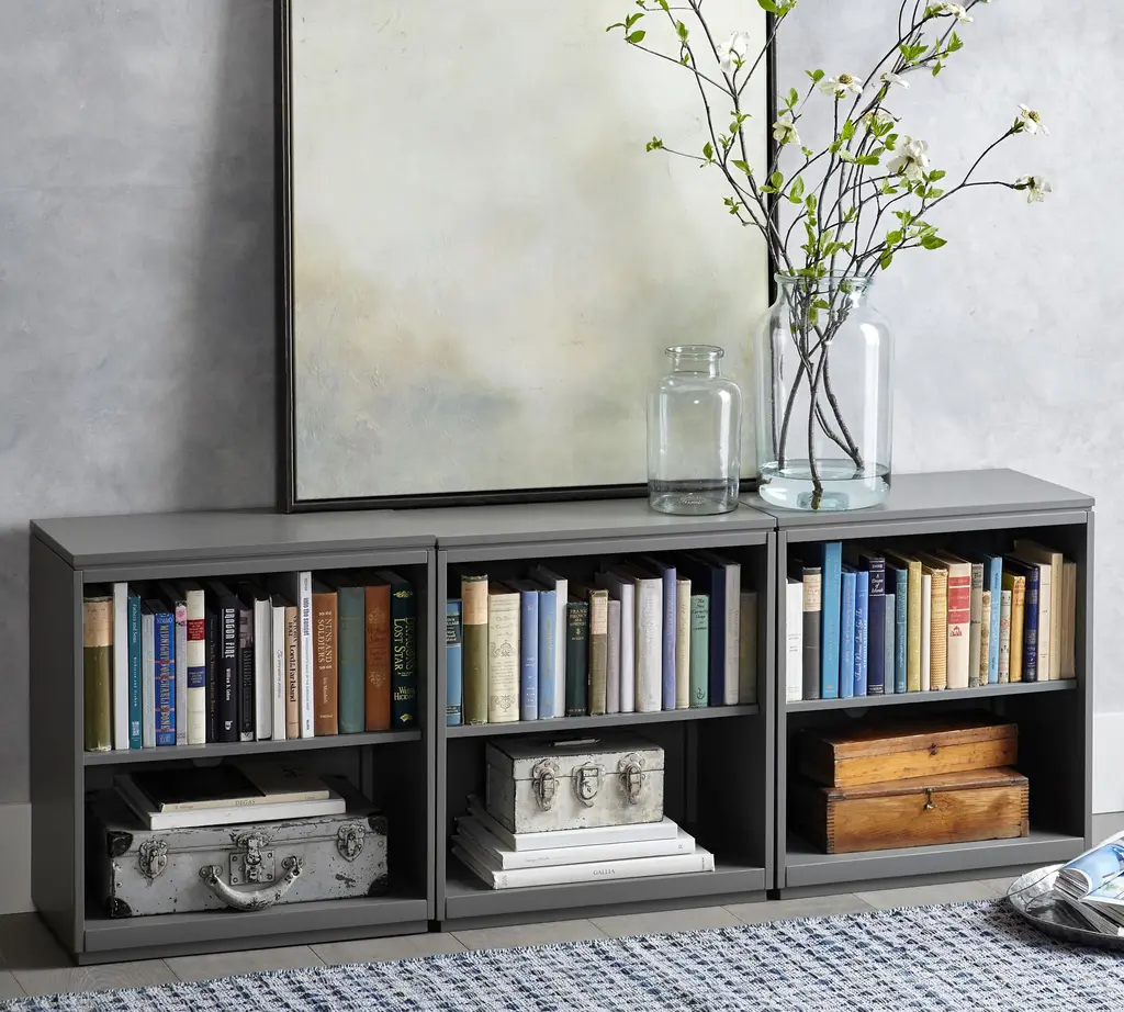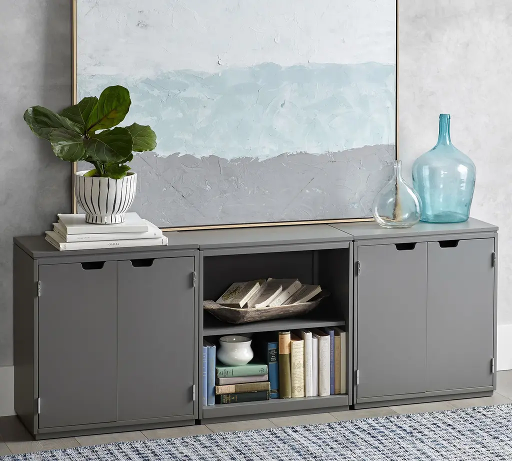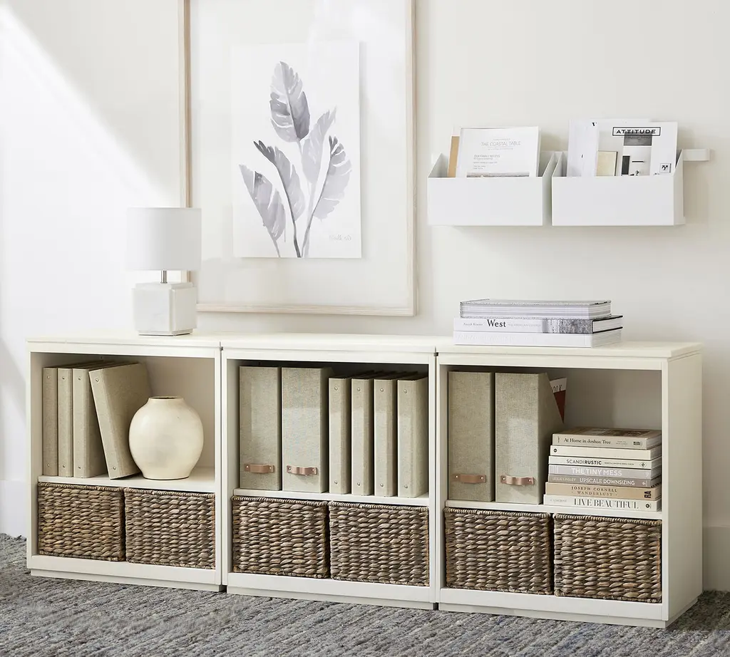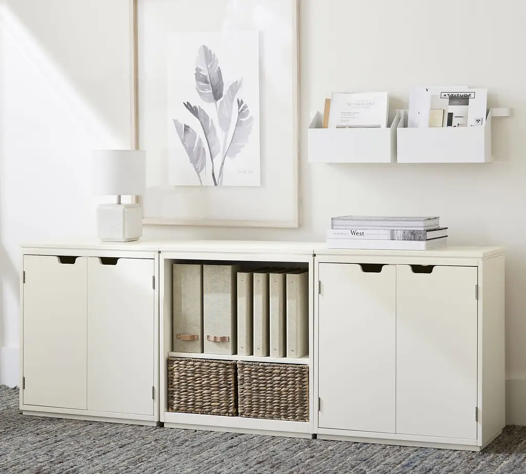 Our modular Windsor system fits more organization into your space. We kept the look streamlined, with hardly any hardware, and made the cabinets and bookshelves easy to stack. Store as many office supplies and documents as you need, either on display or tucked out of sight, and add on at any time.