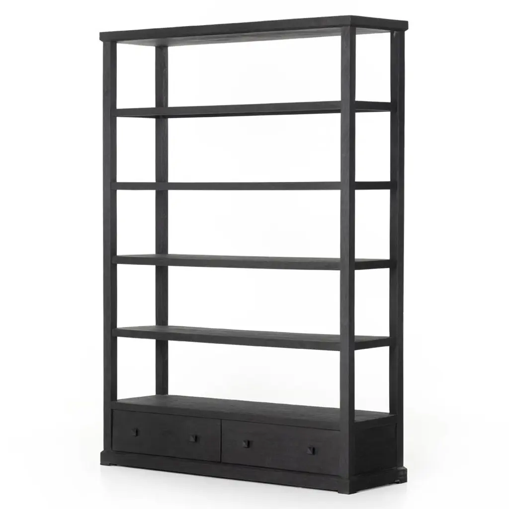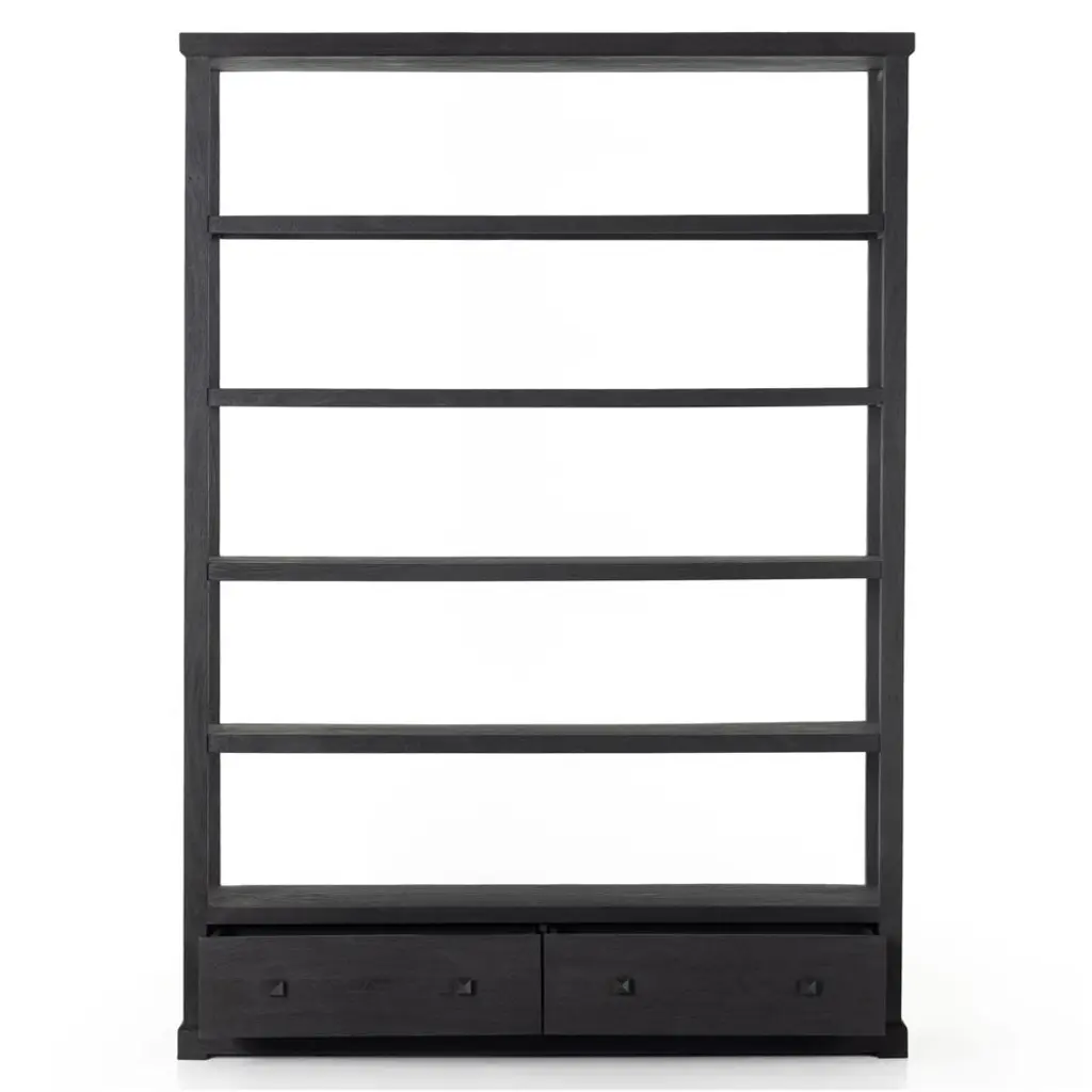 Winston Modern Classic Black Reclaimed Wood Wide Bookcase