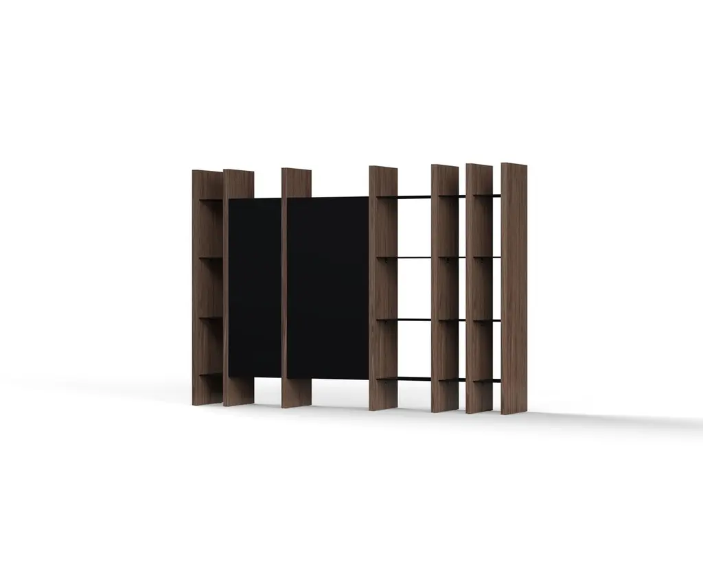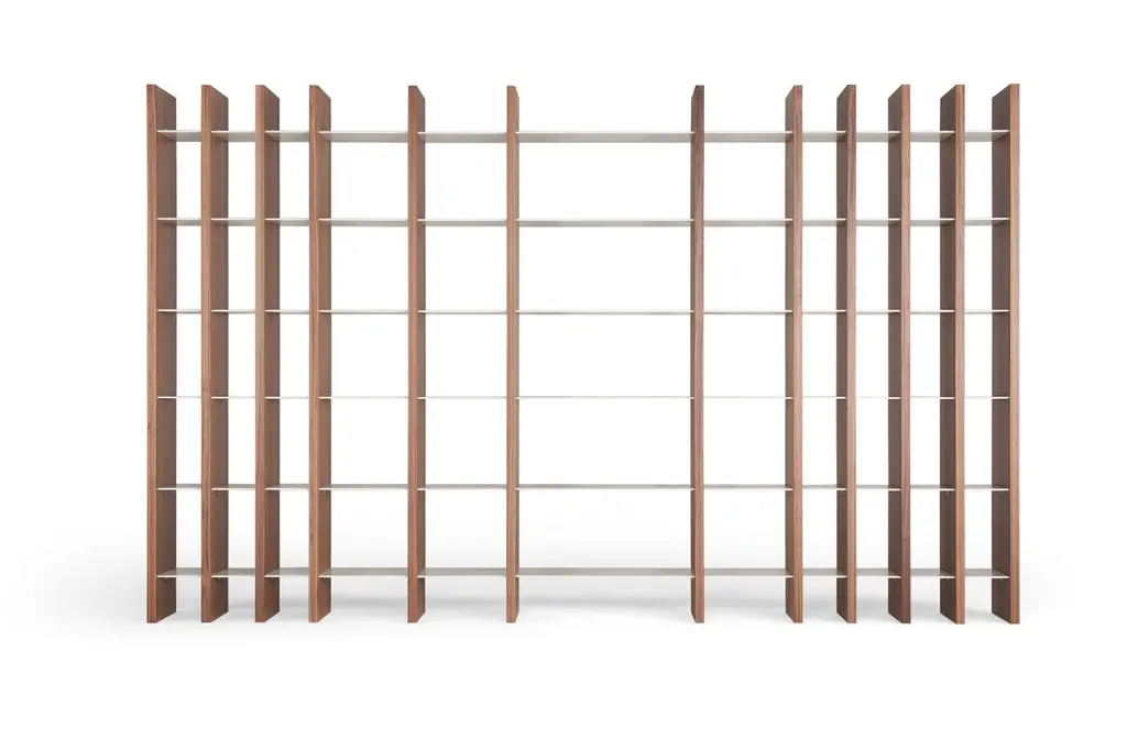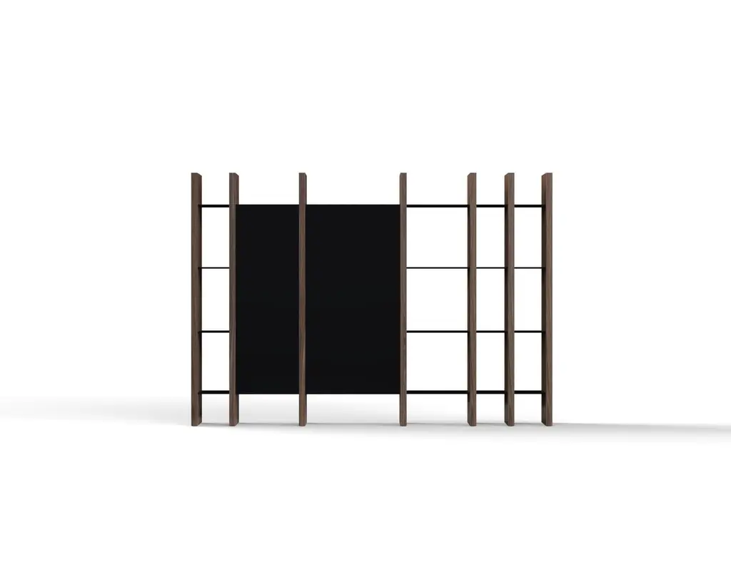 Wood Sistema Parere Bookcase by Amura LabDimensions: W 228 x D 39 x H 160 cmMaterials: STRUCTURE: wood SHELVES: metal and wood DOORS: wood, glass, leather and cuoio.Amura Lab:In their gaze, they carry the strong and poignant beauty of Southern Italy. In their hands, the passion and careful craftsmanship with which they create timeless design environments, capable of combining the memory of their origins with the future of design.It is within this microcosm made of culture, ever-present traditions, artistic influences, and continuous innovation that Amura was born, the Made in Italy furniture brand that embodies the strong and authentic beauty of Southern Italy. A young company that passionately and meticulously pursues the creation of environments with a timeless design, capable of merging the memory of its origins with the future of design. From the careful selection of materials to the pursuit of innovative designs, each phase of creation carries the indelible mark of the most authentic atmospheres of the South