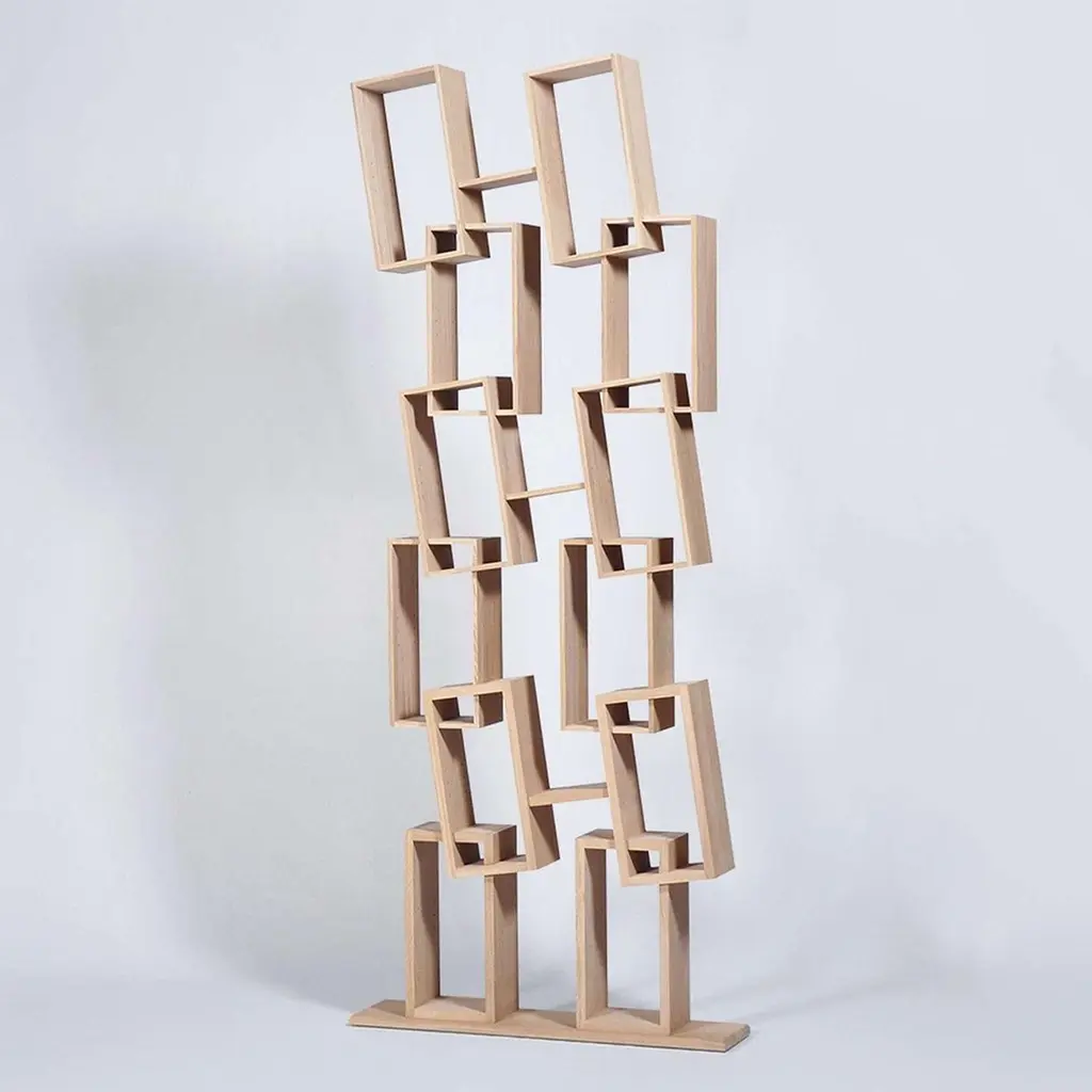 Bookcase Woody Oak double with all structurein solid oak in polished raw finish. From sustainable Anjou forests in France.