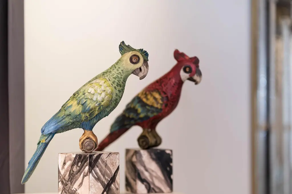 From our Hand-Painted Furniture Collection, we are pleased to introduce you to our decorative Parrot which is part of our category dedicated to accessories and home embellishments.In case you need a touch of adventure even when not travelling, let us bring the outdoor in with our fun handmade and hand-painted parrots. A little exotic accent to add to your home, our hand-painted parrots may be fully customized in terms of colors and design.Born as a bed post finial, it can equally suit your home as a fun ornament, paperweight, bookend or just a great companion for your bird pets!At Porte Italia Venezia, it has definitely become our mascot. We are sure this one of a kind accessory will find its place at your home too.