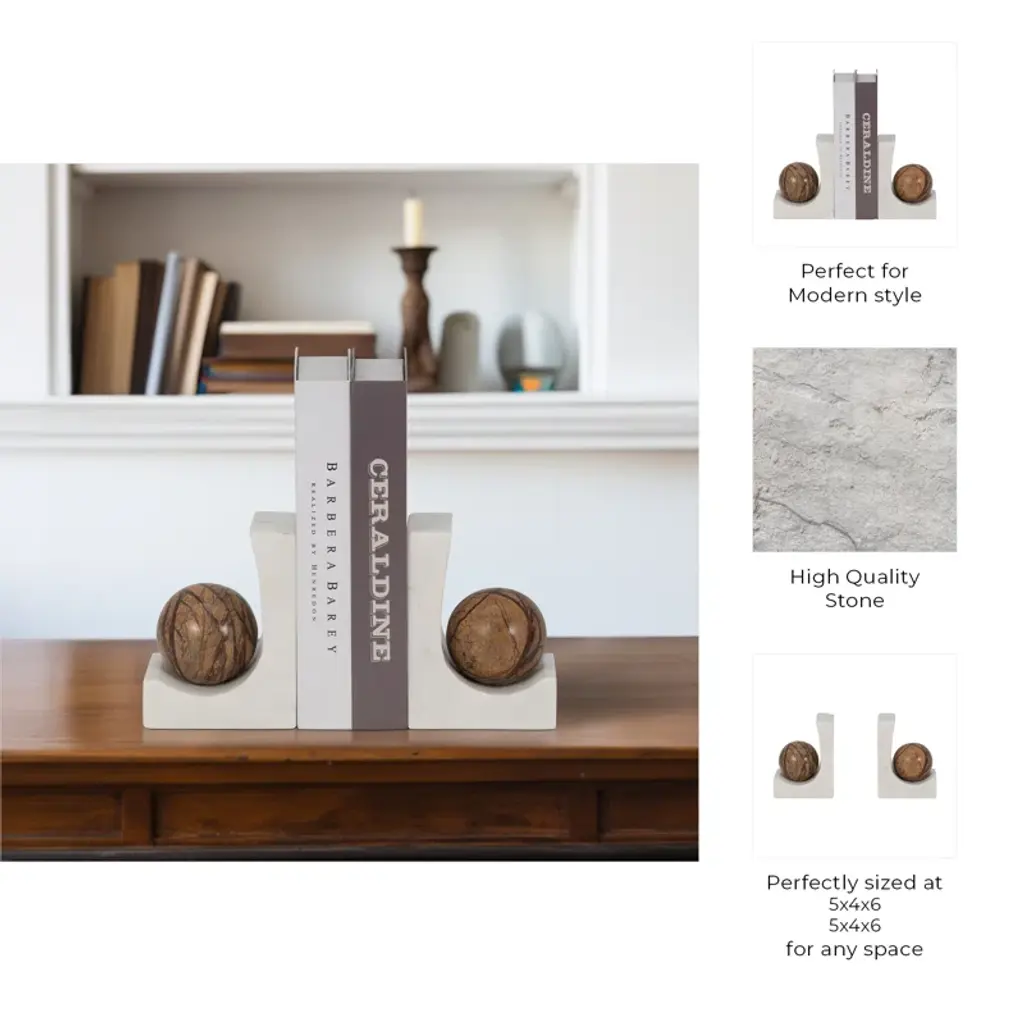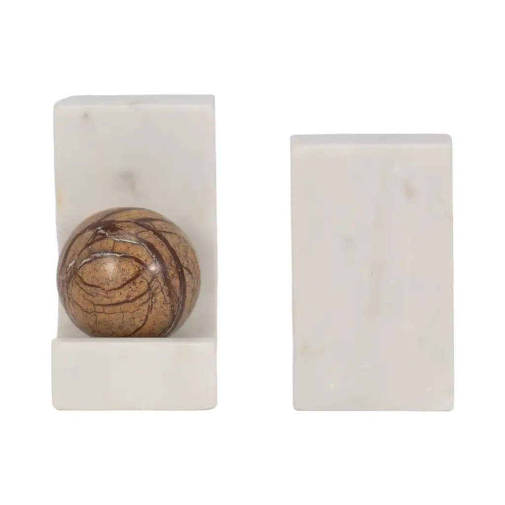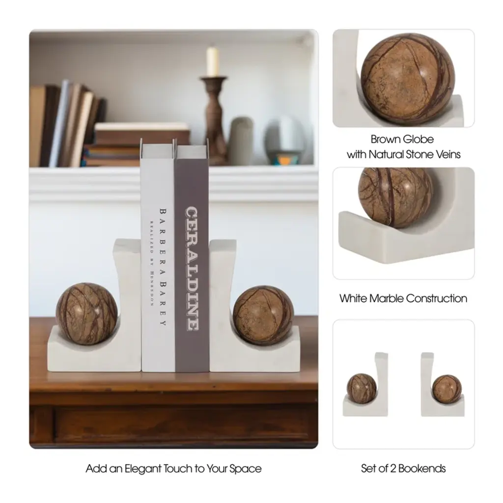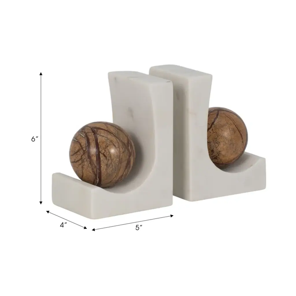 6" Rikard Marble Bookends In White And Brown Finish, 6"h, Set Of 2 - 5" X 4" X 6" (Set Of 2)