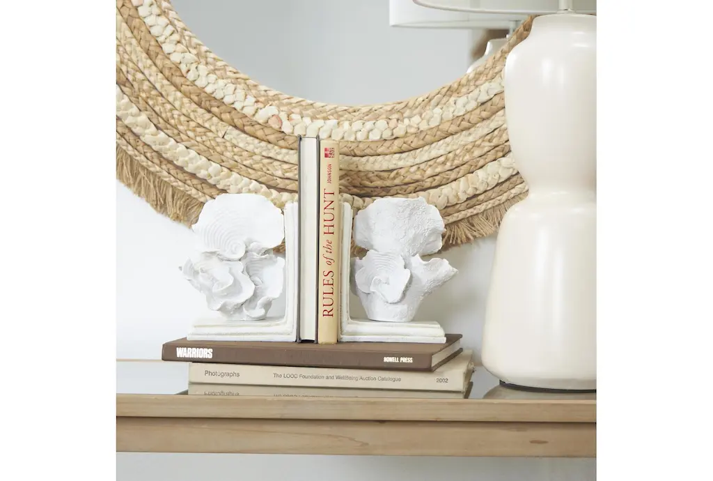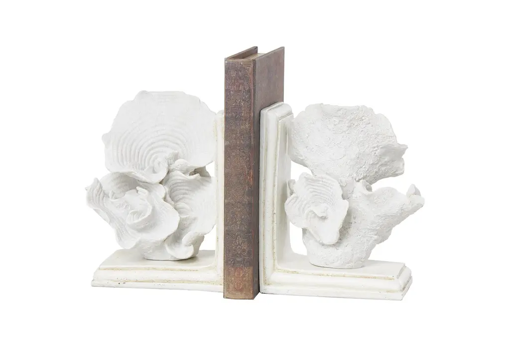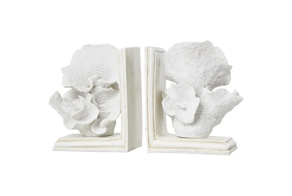 These 7" White Coral Textured Bookends are modern in style and made from stone, offering a serene and charming addition to your home. The beige color and cream polystone material provide a natural, soothing aesthetic, while the solid metal construction ensures stability and durability.