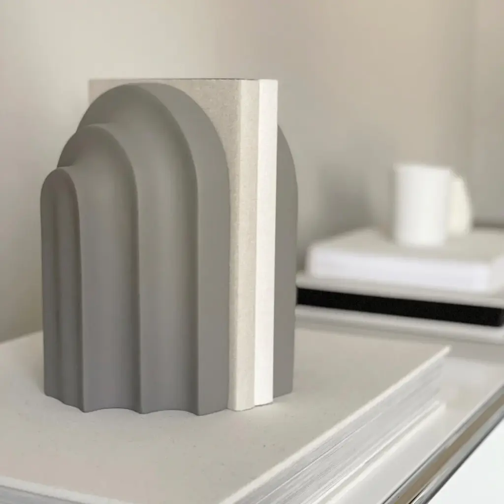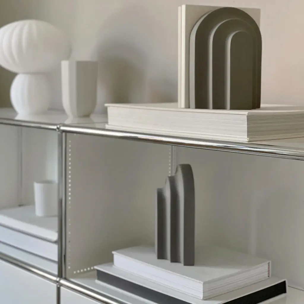 Together with a row of books, Arkiv forms a small graphic ensemble of arches and blocks. Inspired by the function and aesthetic of the classic architectural arches and columns. With its vivid shape, the bookend catches the light and throws harmonious shadows revealing a fascinating and delightful piece to the eye. Lean your favourite books against Arkiv, lay it horizontal to function like paper press or use it as a decorative piece of art.