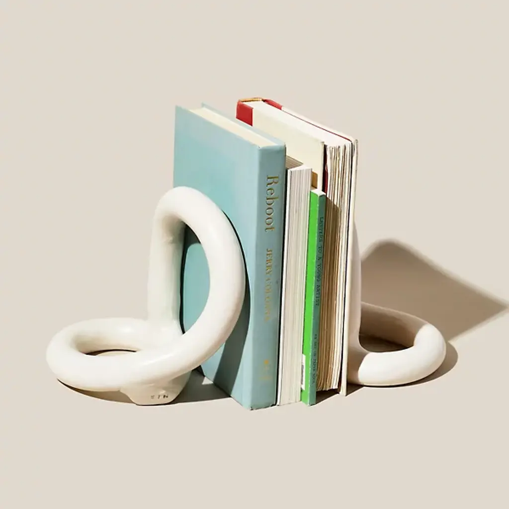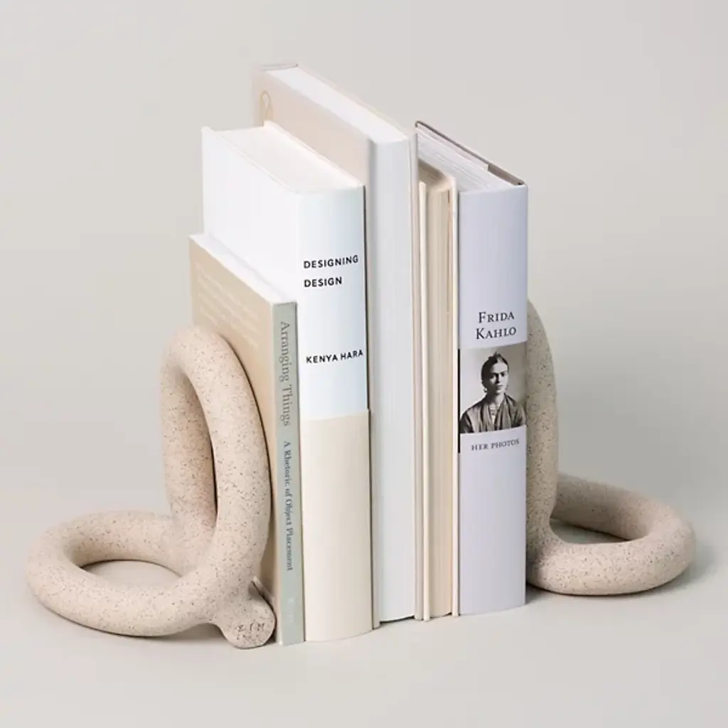 The Bacchus Bookends are masterfully crafted and designed by SIN in Brooklyn, New York. They simply exude sculptural allure with their chunky strands of stoneware, forming an intricate and captivating pair. With their ornamental appeal, these bookends go beyond mere utility and transcend into art, making them worthy of solo display.