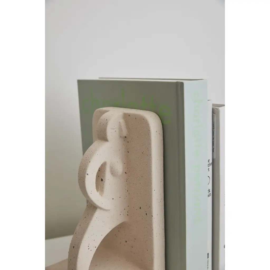 Like two guardians representing the beauty of the female form, these bookends guard your books with two halves of a full figurine. Made from off-white neutral clay with a sandy, speckled texture, each ceramic sculptural vessel stands on a sturdy platform to keep books upright on either side.