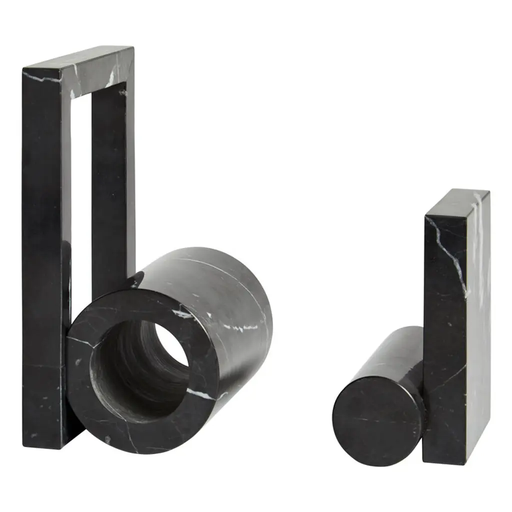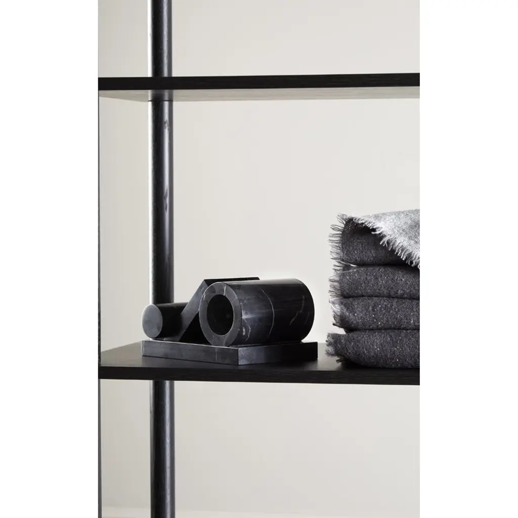 Woud's Booknd bookend is a sculptural decorative object, consisting of two different parts. Designed by Roel Vandebeek, the bookends combine round, cylindrical shapes with straight lines – this dialog between different geometric forms is as charming on a bookshelf as it is on a living room table, either both parts together or separately. The natural look of marble with its changing colors and patterns crowns the bookends' beautiful appearance.