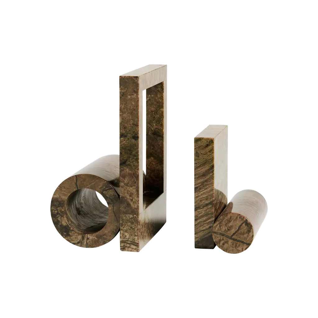 Elevate your living room or library bookshelf with the Booknd Bookends (Set of 2) from WOUD. Crafted from smooth, solid marble, these bookends add a touch of natural beauty to any space. Their graphic design seamlessly blends soft curves and clean lines, making them not just functional but also coveted decorative pieces. A must-have for any book lover! Highlights