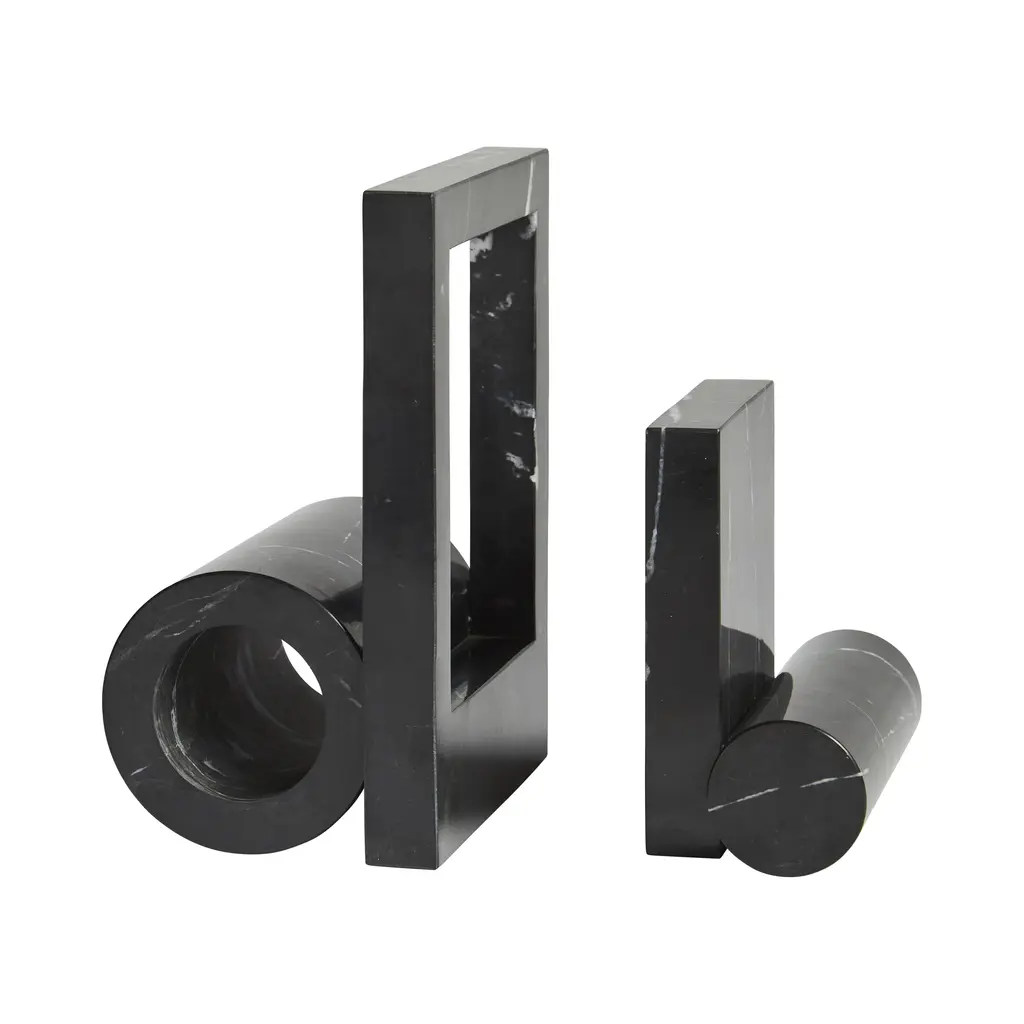 Elevate your living room or library bookshelf with the Booknd Bookends (Set of 2) from WOUD. Crafted from smooth, solid marble, these bookends add a touch of natural beauty to any space. Their graphic design seamlessly blends soft curves and clean lines, making them not just functional but also coveted decorative pieces. A must-have for any book lover! Highlights