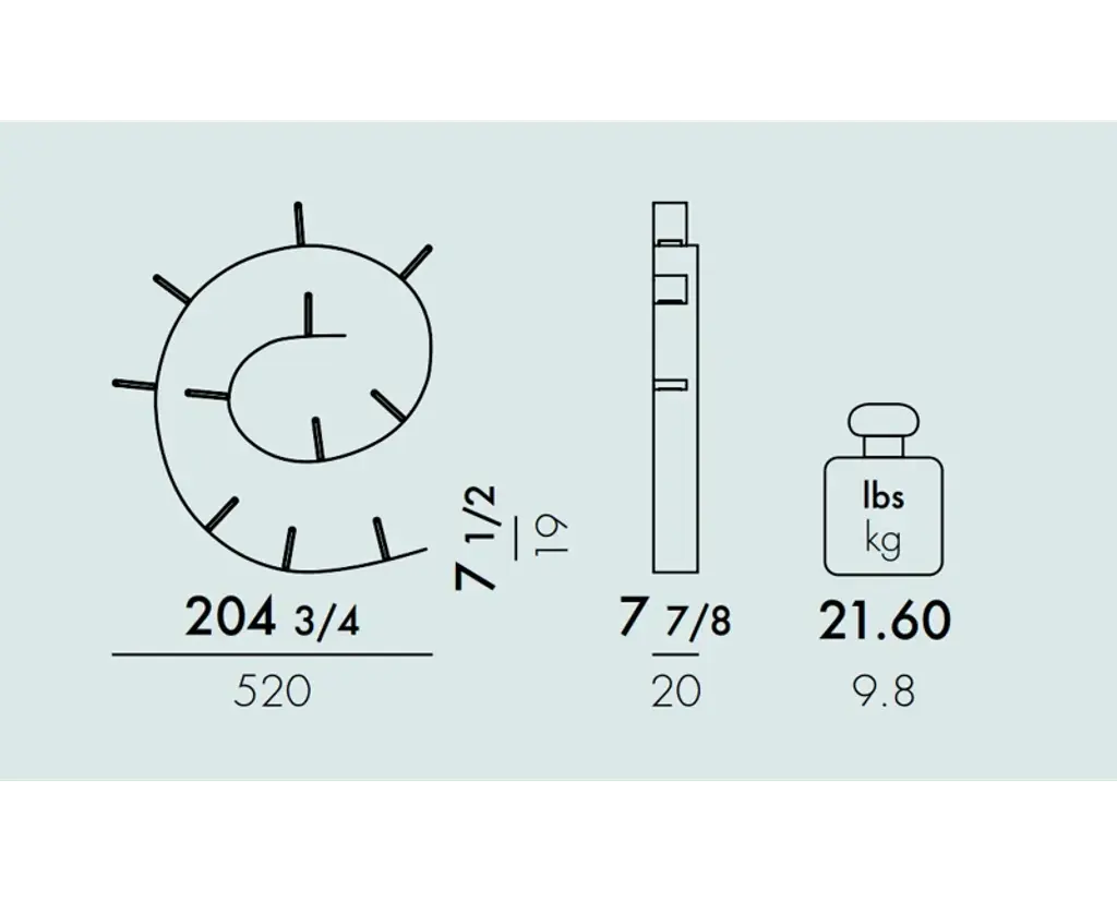 Bookworm, the flexible bookcase, is the result of the encounter between the creativity of an artist such as Ron Arad, combined with Kartell's technology, giving life to a revolutionary project produced on an industrial scale. A sinuous bookcase that takes on the desired shape without compromising strength and functionality. Bookworm is marked by a series of bookend supports. Bookworm combines flexibility and high strength allowing a load of about 10 kg per support.