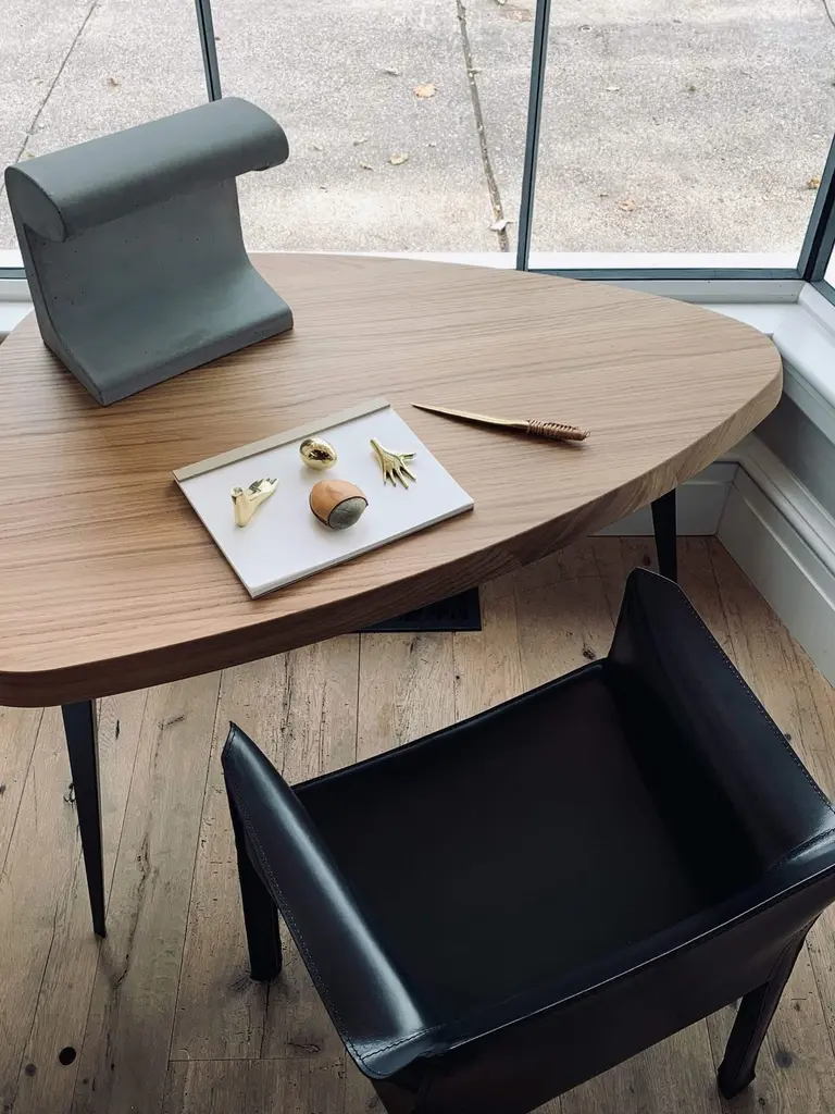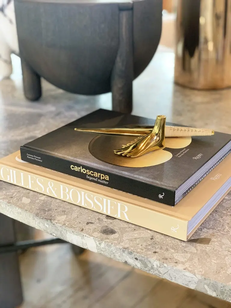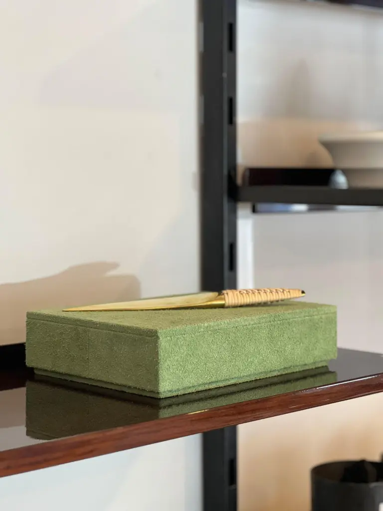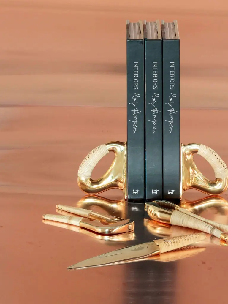 For five generations the design house of Carl Aubock has been turning ordinary objects like paperweights and bookends into extraordinary objects of beauty in an old town house in Vienna. Mixing old world craftsmanship with Bauhaus design materials such as brass, leather, wood and horn are transformed in eccentric, imaginative modern objects.Another elegant twist on an everyday object, Carl Aubock's letter opener is sleek and sophisticated in polished brash with a cane-wrapped handle.