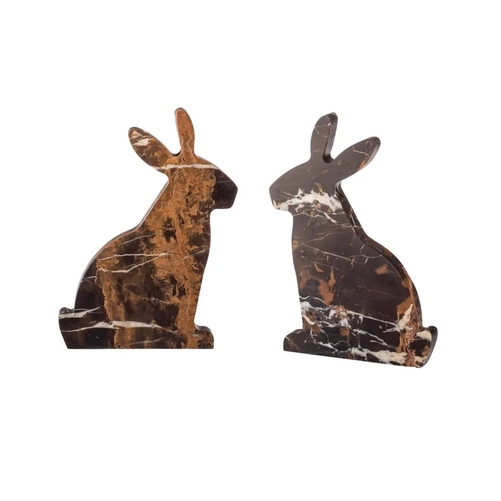 "Bunny" Black & Gold Marble Bookend Set In The Shape Of A Rabbit