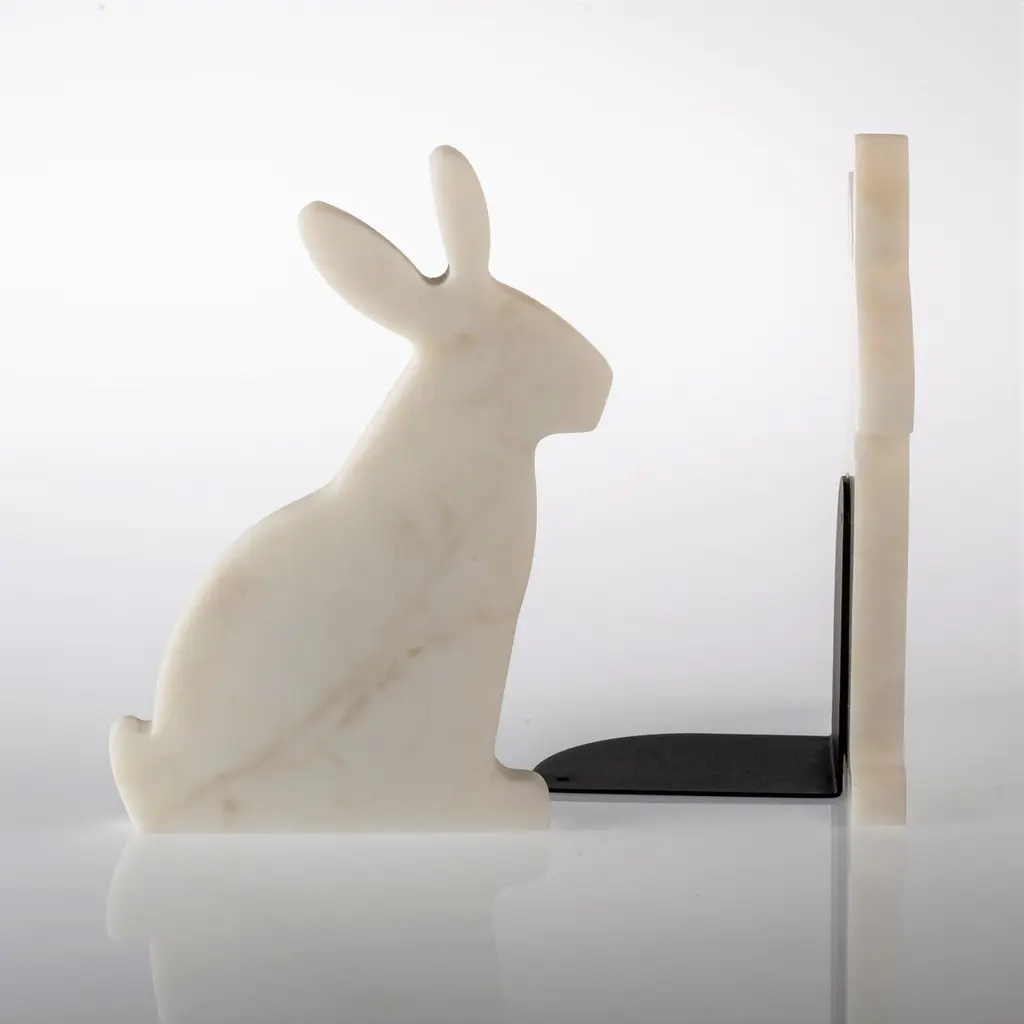 "Bunny" Right Bookend Made Of White Carrara Marble In The Shape Of A Rabbit