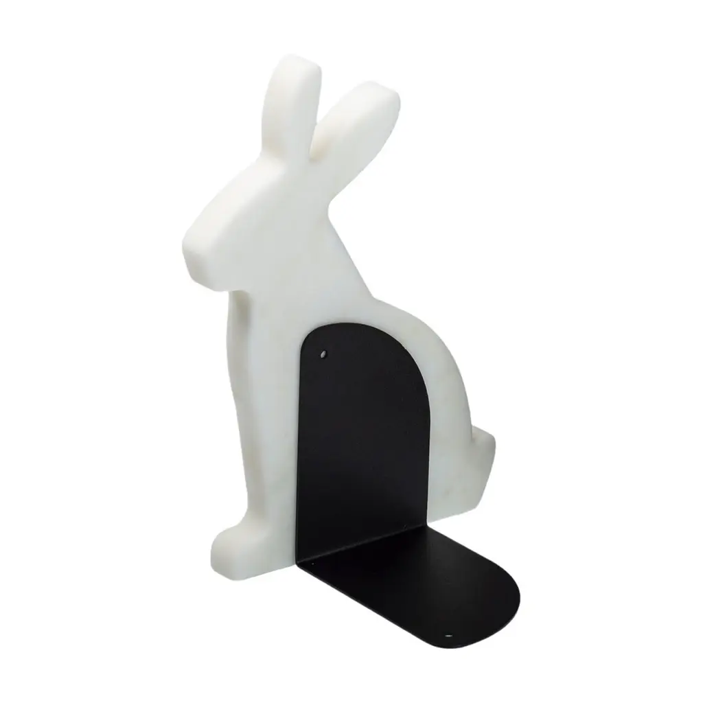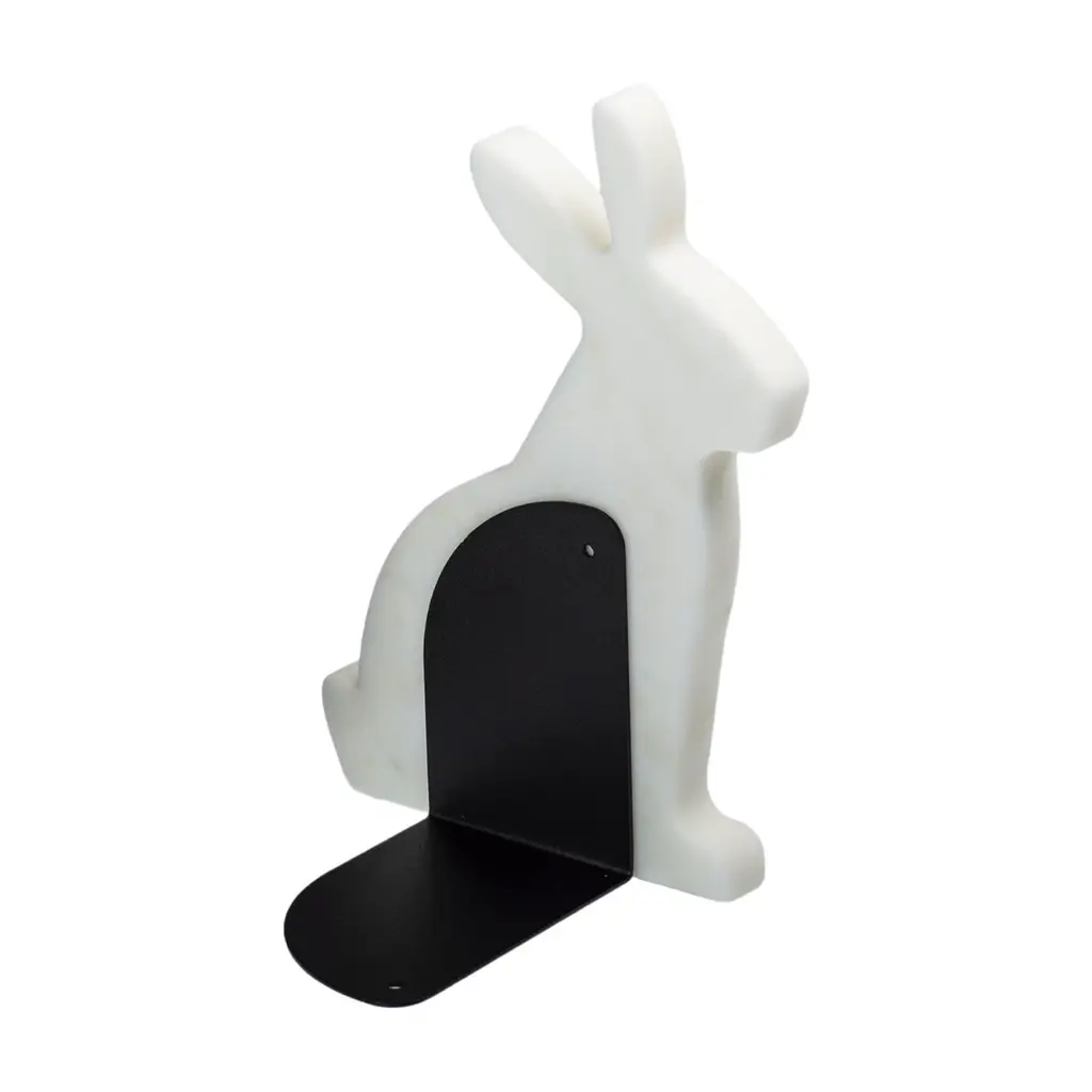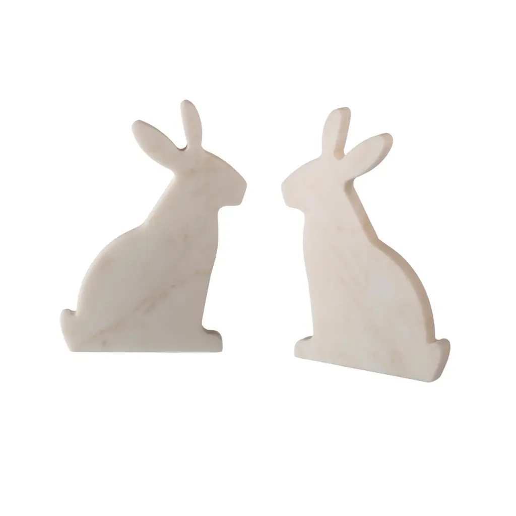 "Bunny" White Carrara Marble Bookend Set In The Shape Of A Rabbit