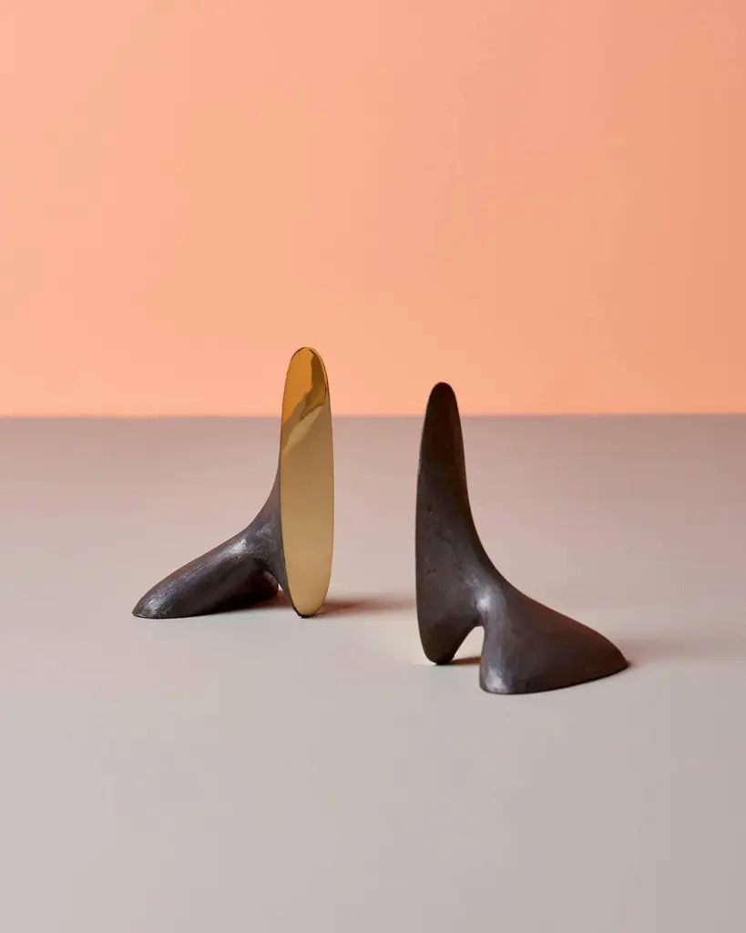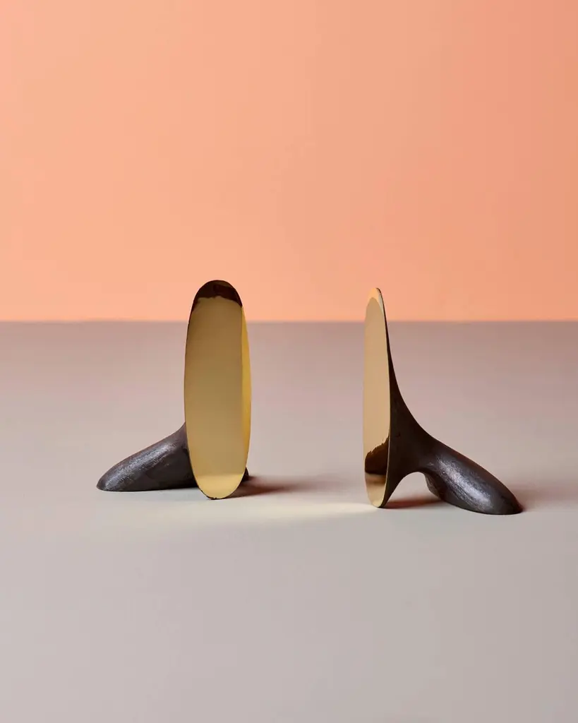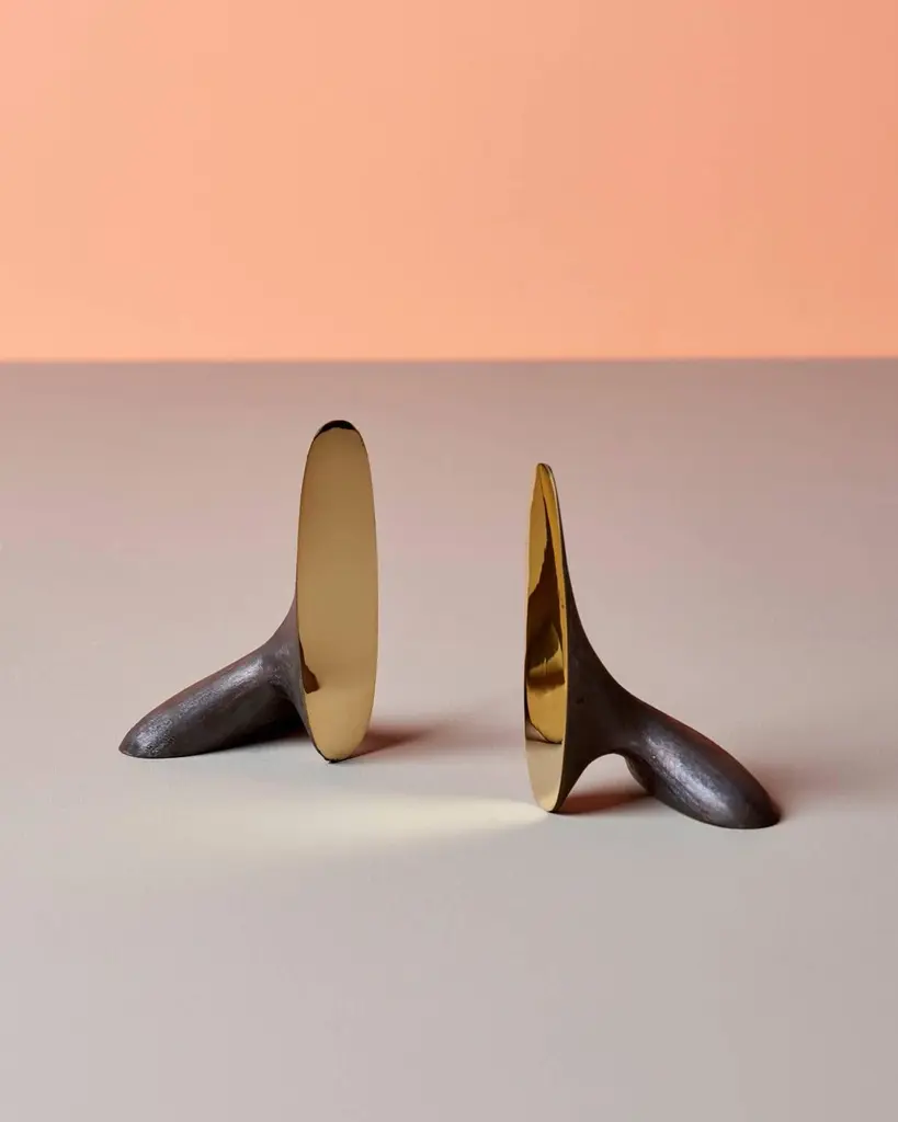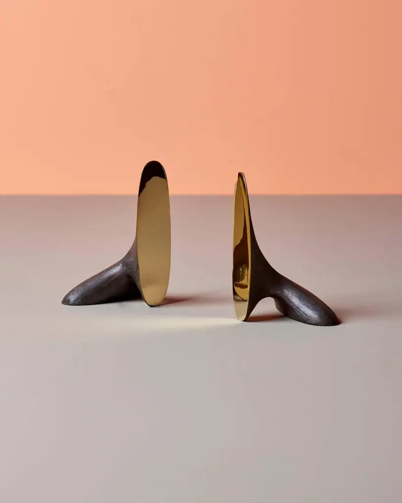 Classic pair of Carl Auböck bookends in a patina and polish brass mix.
