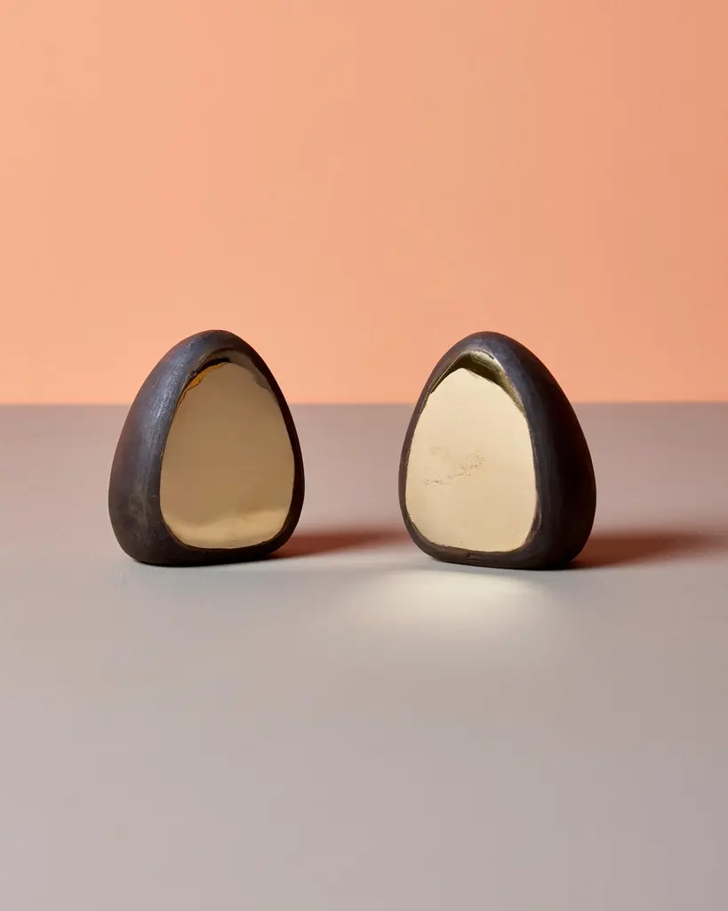 Classis pair of Carl Auböck bookend in a patina and polish brass mix.