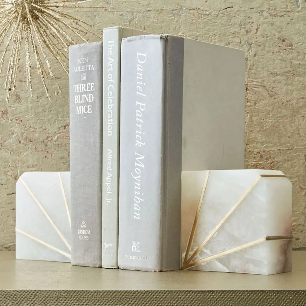 4"w x 2"d x 4"h. Alabaster with brass-finished inlay. Sold individually. Made in India.