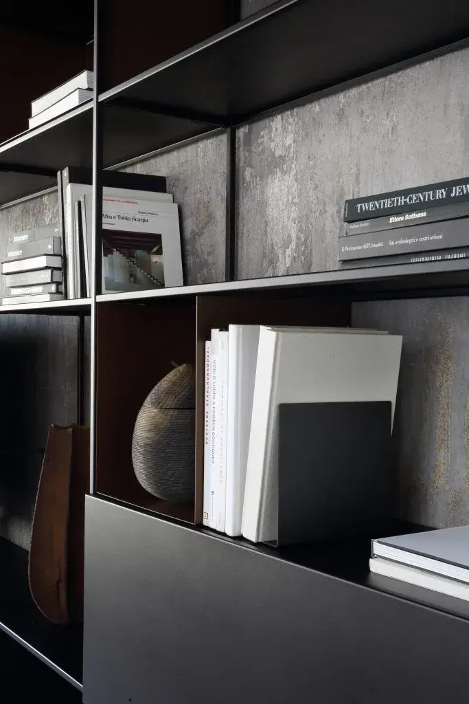 Easy Irony is a bookend in sablé coppery black or embossed white.A must-have accessory in all libraries, the bookend will be able to keep in order all our readings we want to store in our Easy Irony. Thickness of 2 mm.
