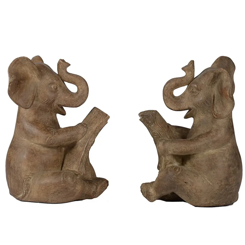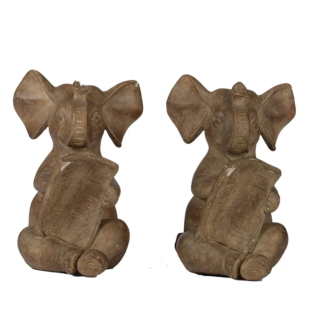Handsomely sculpted, then cast in resin and finish in antique brown.; this set of Elephant Bookends will add a touch of flair to any room while keeping books and magazines upright and organized.; Product Details: 52.5% Calcium Carbonate, 45% Polyesternare, 1.5% Paint, 1% Hardener/Accelerant; The Features: Pair of playful elephant bookends; Measurement: 4.3x4x6(Inches)/each; Weight: 2.6 lbs/set