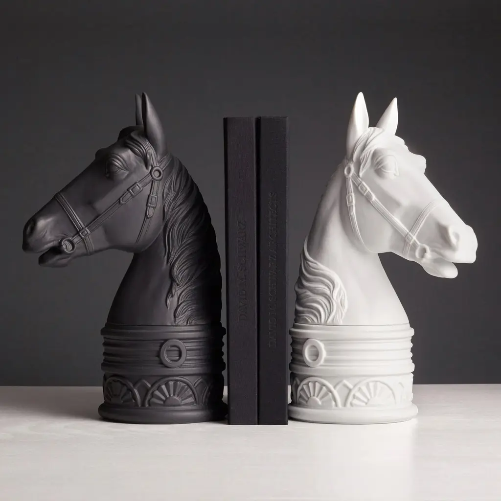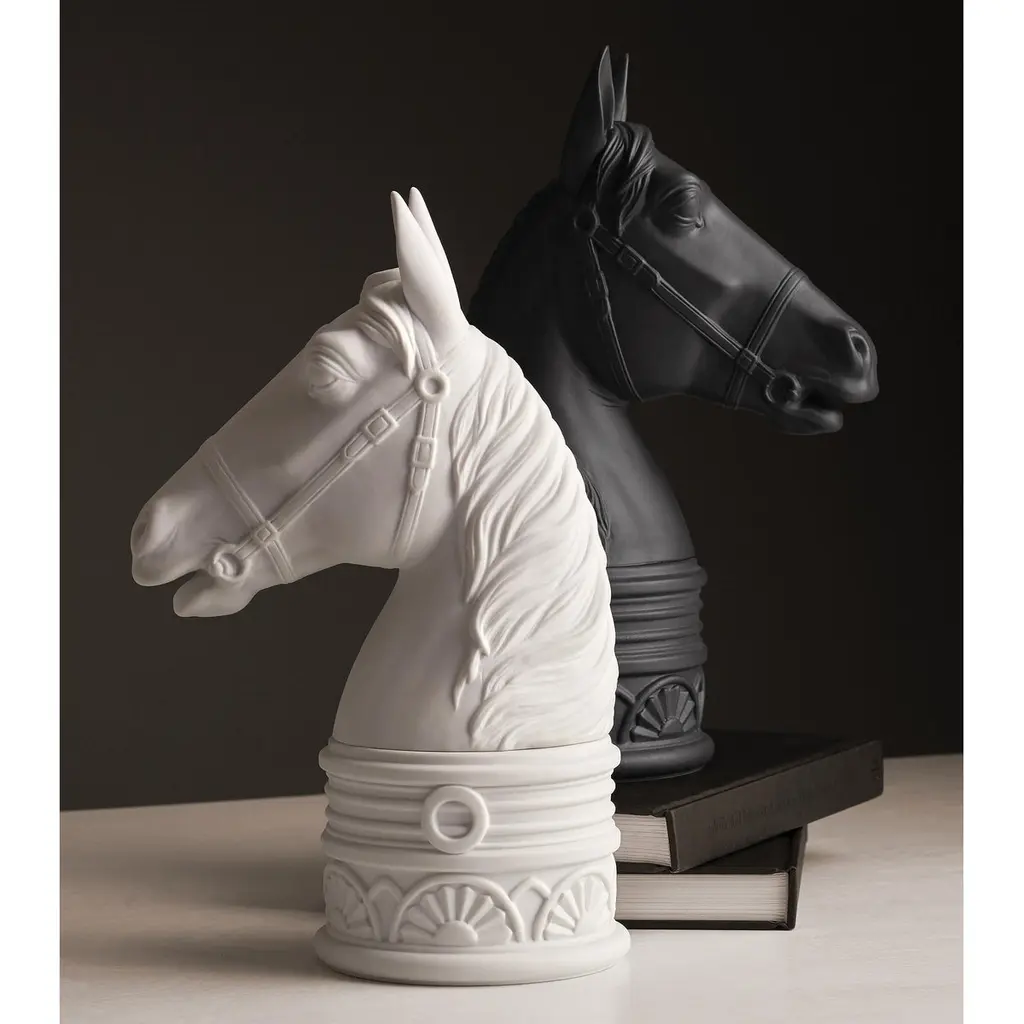 Bookend Equestrian Black and White Set of 2with all structure in fine porcelain, with 1 whitehorse and 1 black horse.Dimensions: L20xD13xH33cm each.