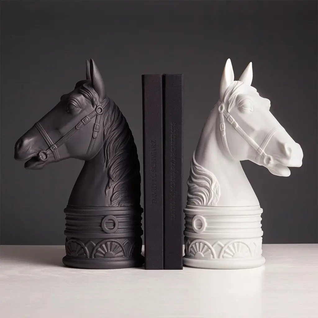 Bookend Equestrian Black Set of 2 in porcelain in black finish.Dimensions: L20xD13xH33cm each.Also available in white finish on request.