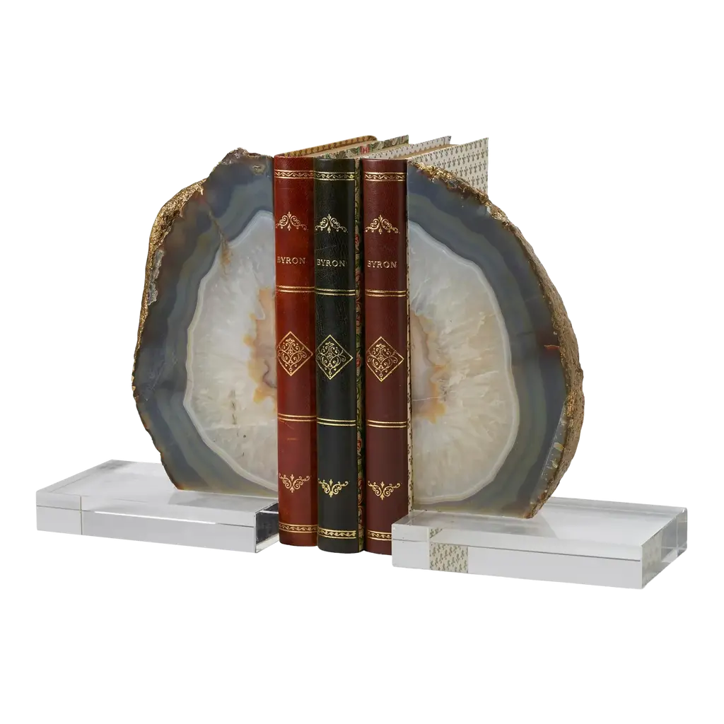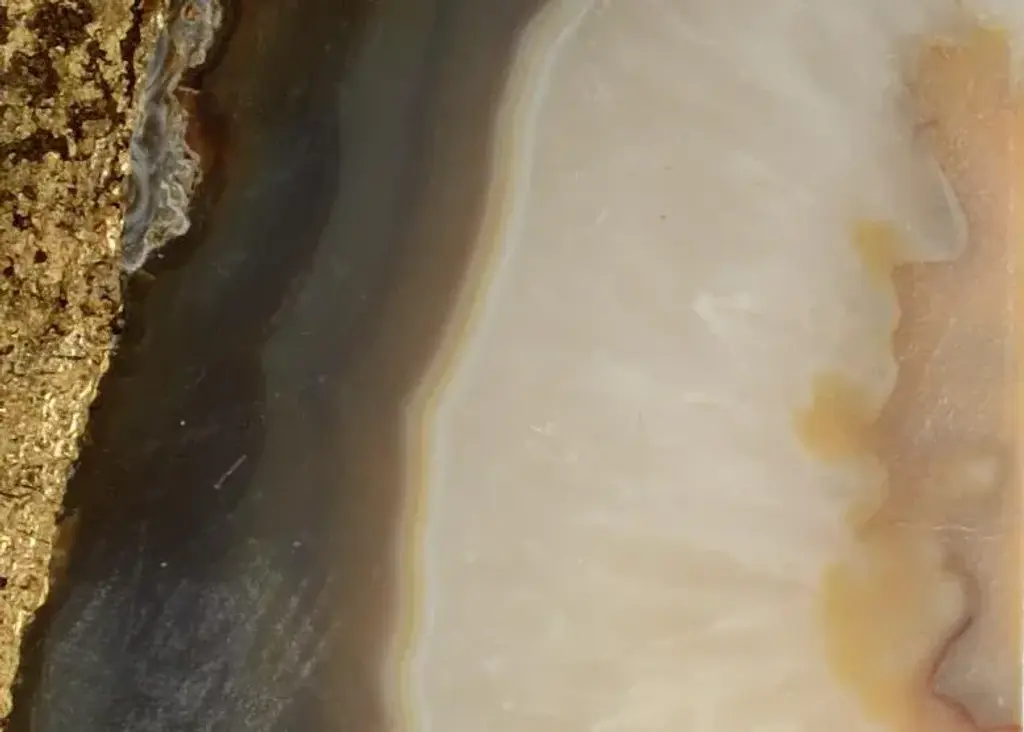 Natural agate edged with metallic gold paint on crystal base-agate color may vary