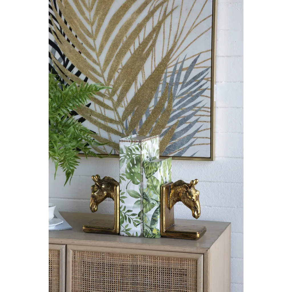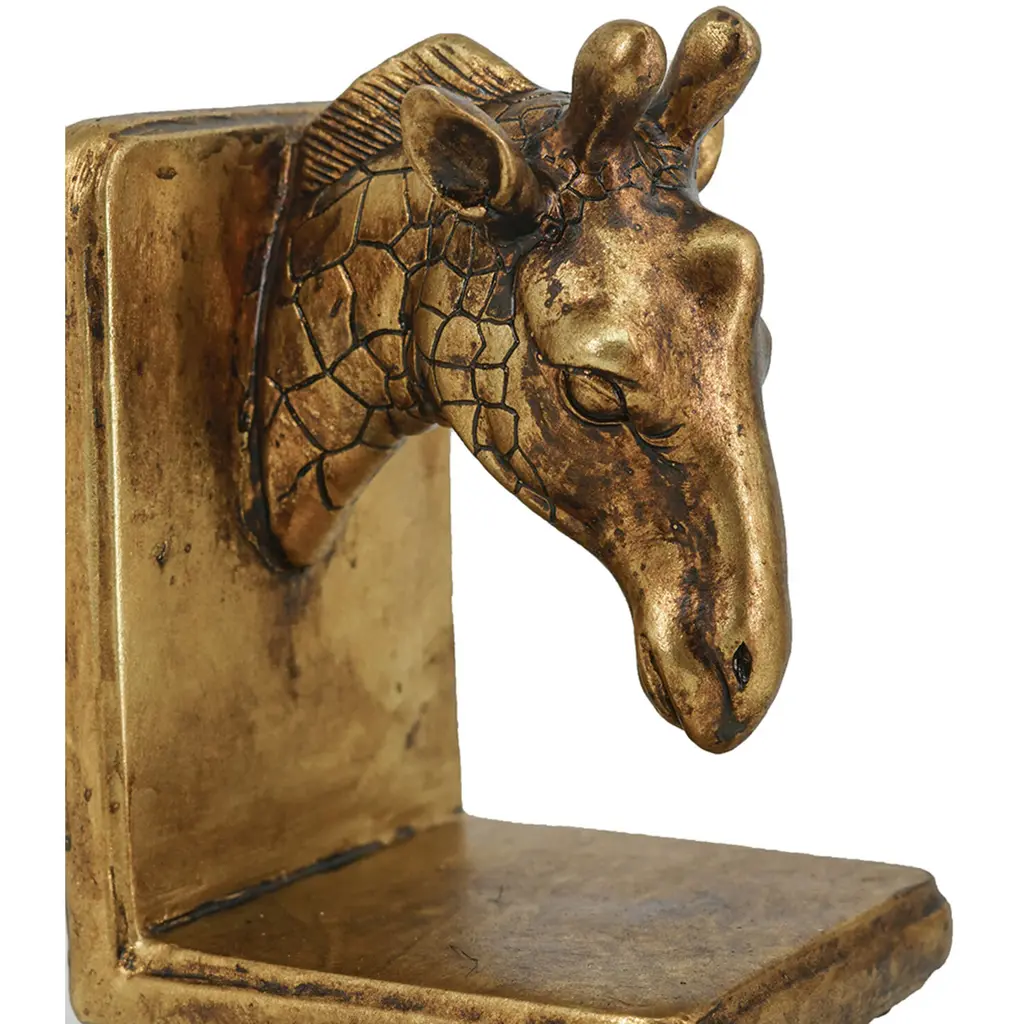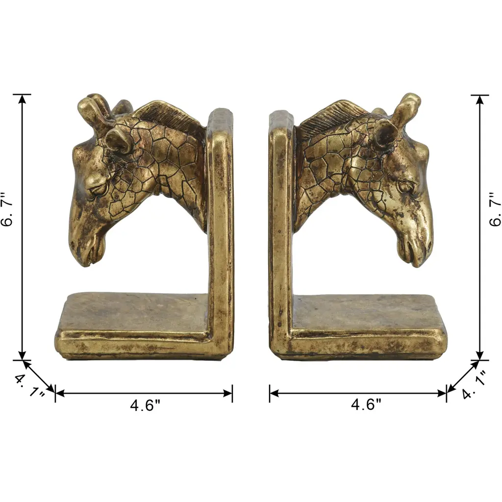 Our set of two Giraffe Head Bookends are both decorative and practical. They add a touch of personality to any room while also being functional to keep your books organized. Perfect for your living room or office, they provide a unique yet transitional style to any bookshelf.