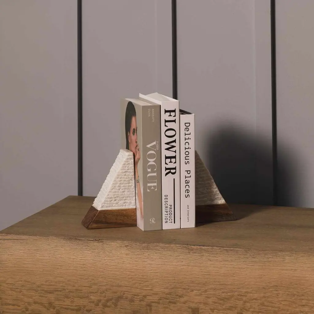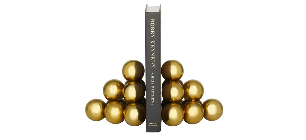 Inspired by big, bold cocktail rings, each Globo Bookend features an L-shaped brass base supporting a luminous globe of celadon acrylic. Use them together to keep your tomes from toppling.