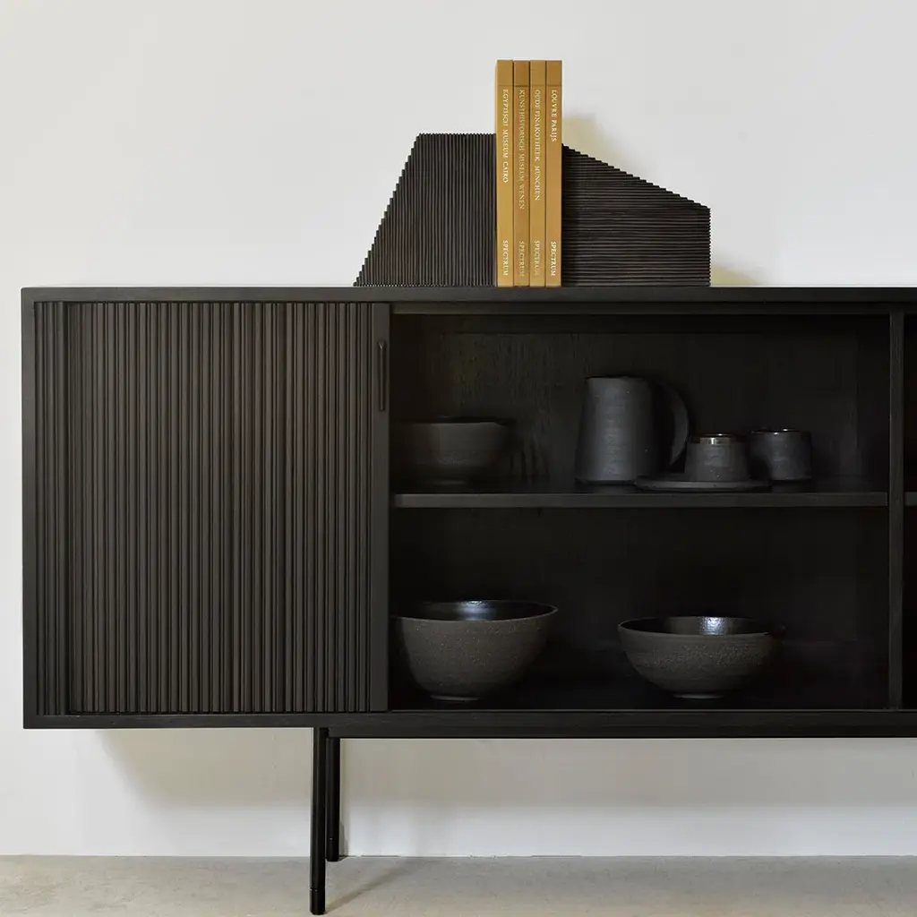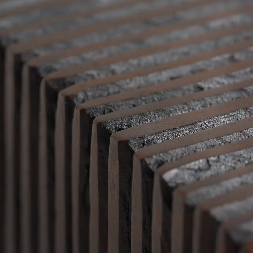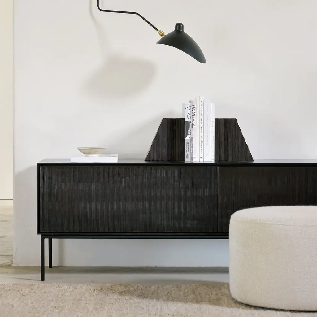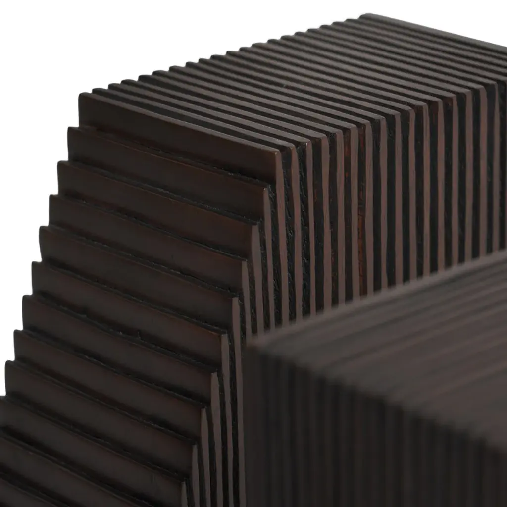 The Grooves book ends are soulful to say the least. Every single line you see is hand carved, making each piece truly unique. Small imperfections are part of the story, even more so: they enhance Grooves' character. The result is a slightly different surface every time, each with its own rhythm and dynamics. Made from solid mahogany finished with a dark brown varnish, these book ends complement the wider Grooves collection.Made from dark brown tainted mahogany with a varnish finish.