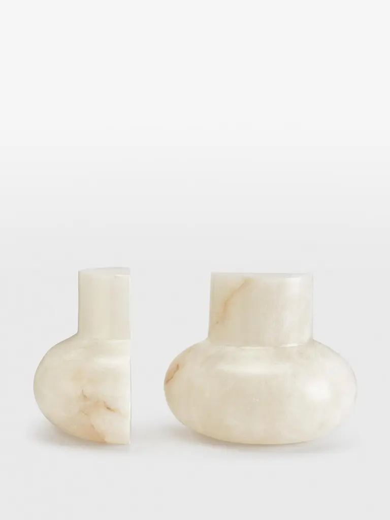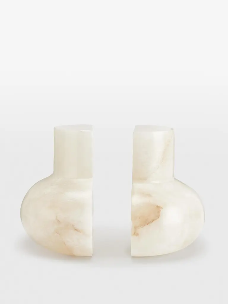 Crafted from natural alabaster, our Harling bookends bring a touch of sophistication to your bookcase with no two styles the same. Echoing the bulbous shape of our Ava Vase, they also draw inspiration from the 1970s interiors of 180 House. Set of two bookends Crafted from natural alabaster No two styles are the same Inspired by 180 House