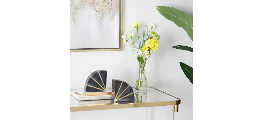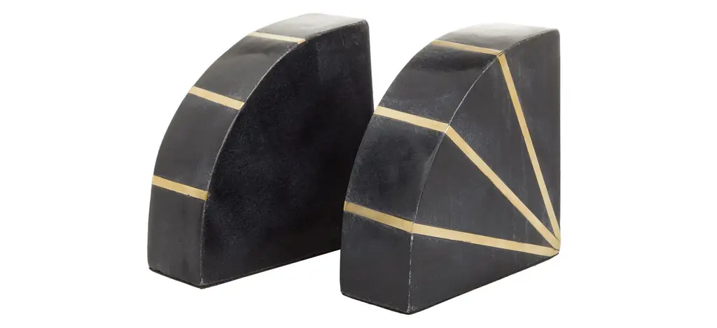 Keep your books and magazines organized with these beautifully crafted and functional Ivy Collection Rounded Geometric Bookends With Accents Set. This pair of durable bookends can act as focal point pieces for the living room, the office, home libraries, and study area/desks. Arrange your bookshelf with this classic and elegant Marble bookends that would never go out of style.