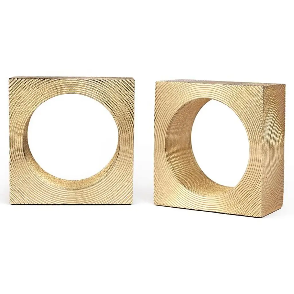 Karl Hollywood Regency Gold Brass Circular Bookends - Set Of 2