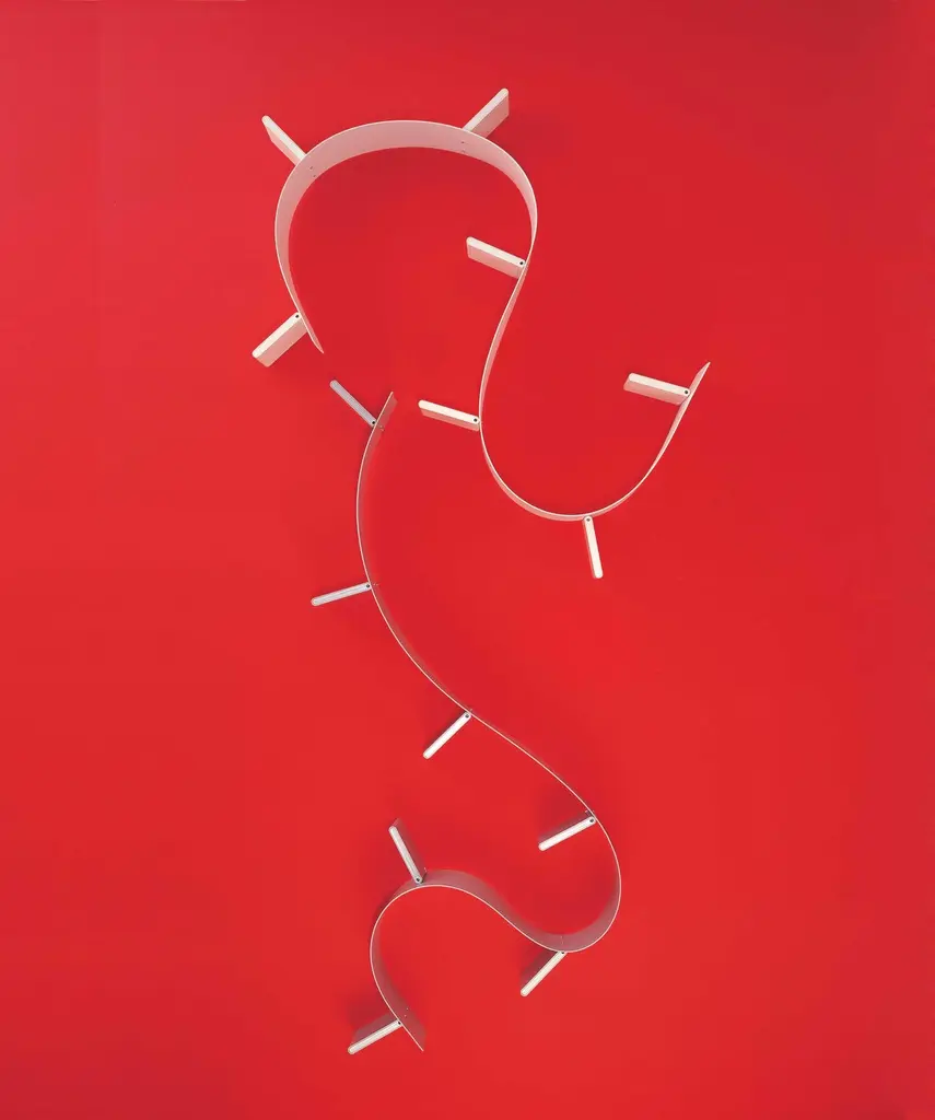 Bookworm, the flexible bookcase, is the result of the encounter between the creativity of an artist such as Ron Arad, combined with Kartell's technology, giving life to a revolutionary project produced on an industrial scale. A sinuous bookcase that takes on the desired shape without compromising strength and functionality. Available in three different lengths, Bookworm is marked by a series of bookend supports. Bookworm combines flexibility and high strength allowing a load of about 10 kg per support.Available in Aluminum, White and Black Gold.Opaline in Black, Cobalt and Wine Red.