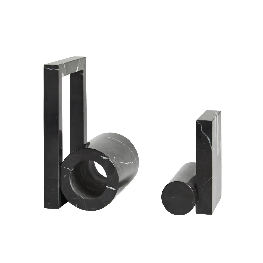 A collection of elegant paperweights in natural stone designed by Elisa Ossino for Salvatori, these pieces play with the simplicity of geometry in their cylindrical and cubed forms. Available in classic white Bianco Carrara and striking black Nero Marquinia marble.